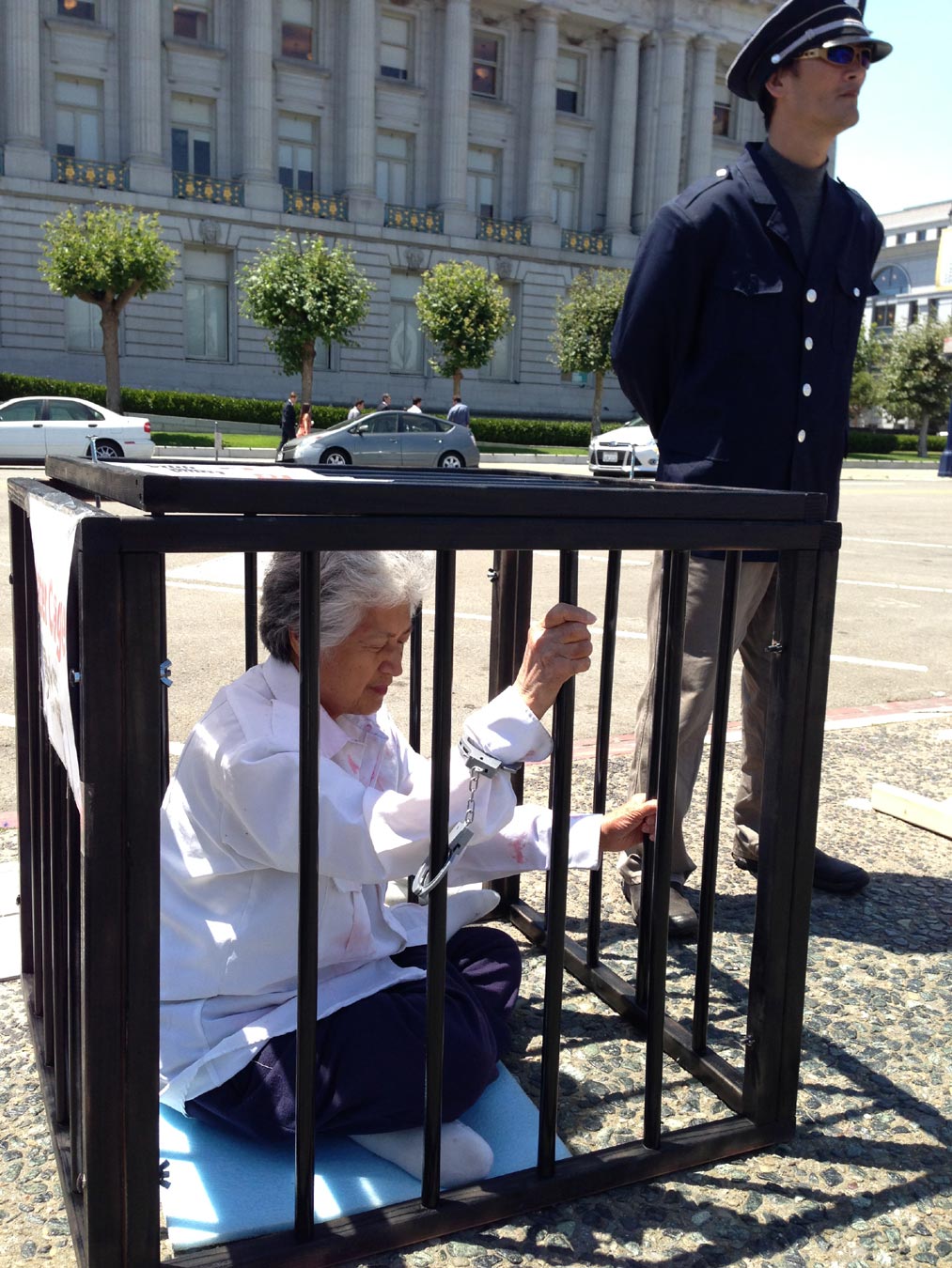 ![]() 旧金山法轮功学员在市政府前举办真人演示的“反酷刑展”,揭露中共迫害,呼吁制止迫害。 |
