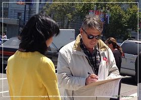 活动获得了旧金山市民的支持,他们纷纷表示:“你们做的事情很有意义!”“这些罪恶必须被制止!”五百多旧金山居民在呼吁美国国会议员支持“281号决议案”的征签表上签名。