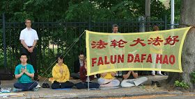 '法轮功学员丹麦中使馆前抗议中共迫害'