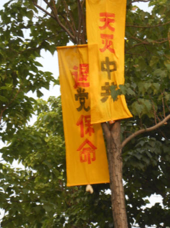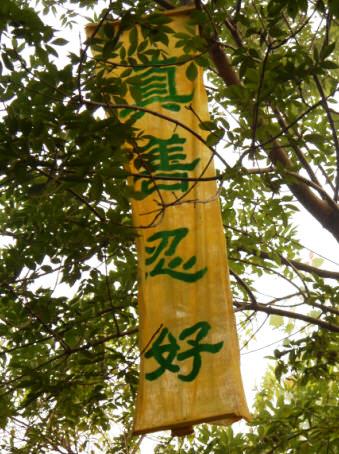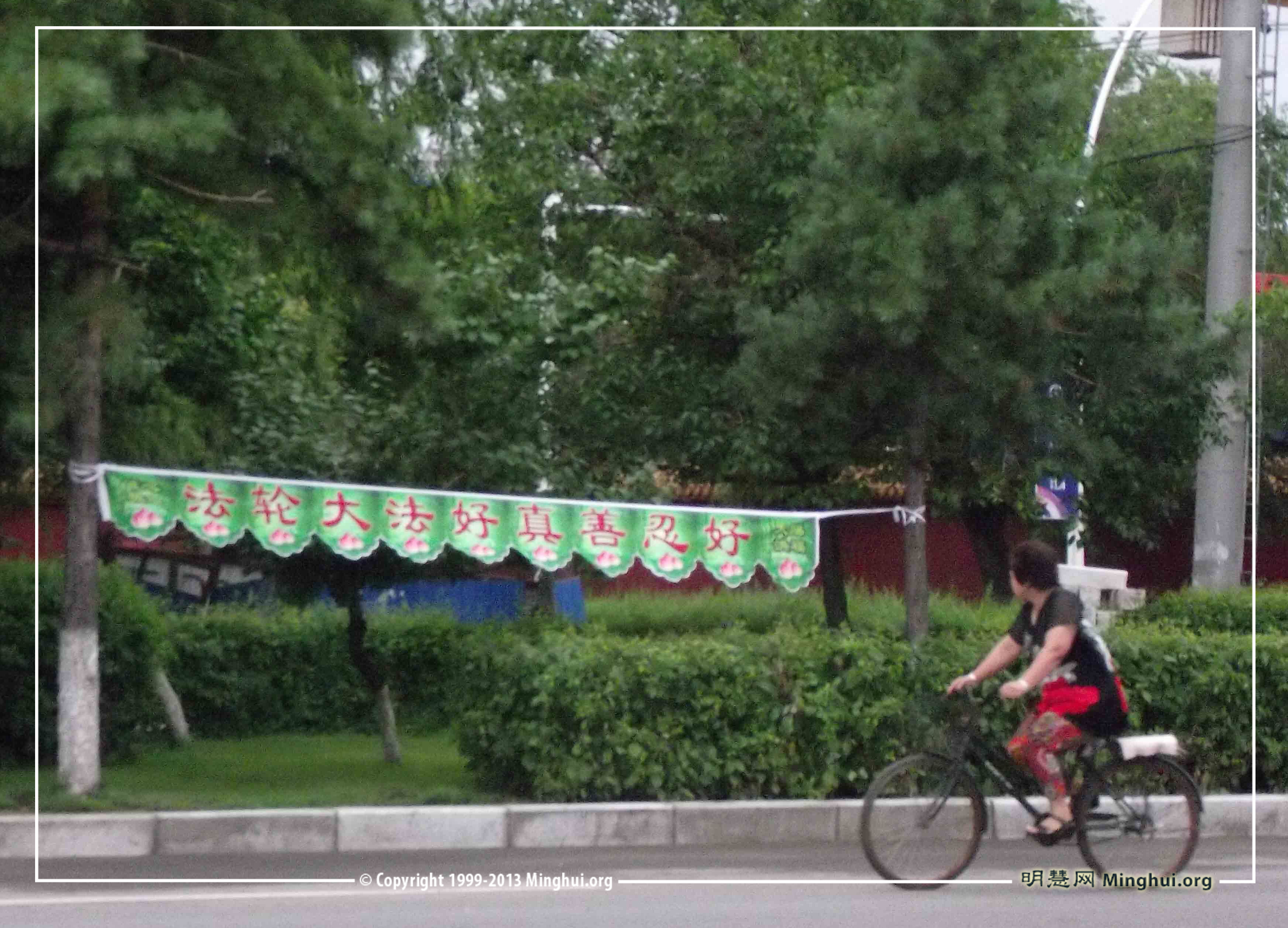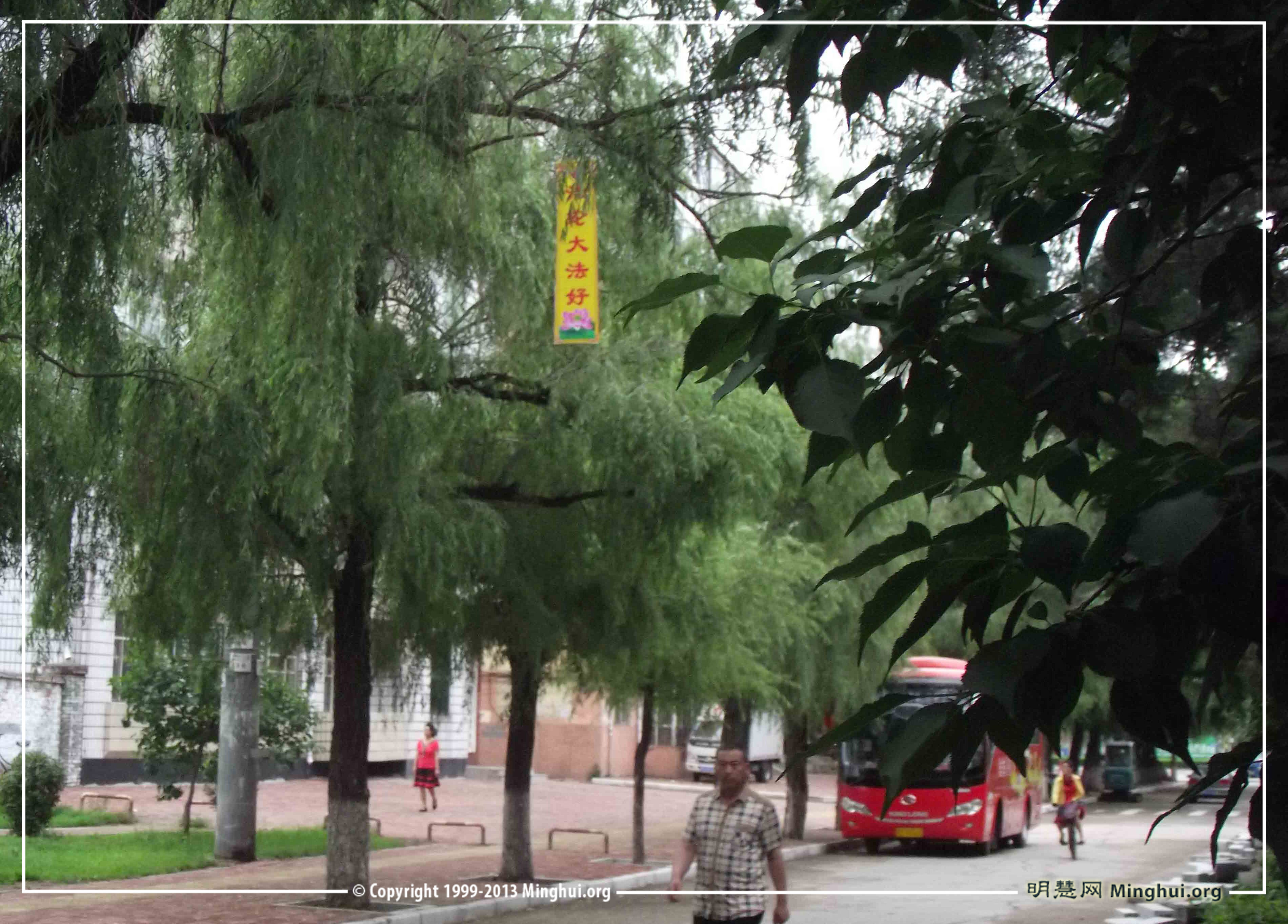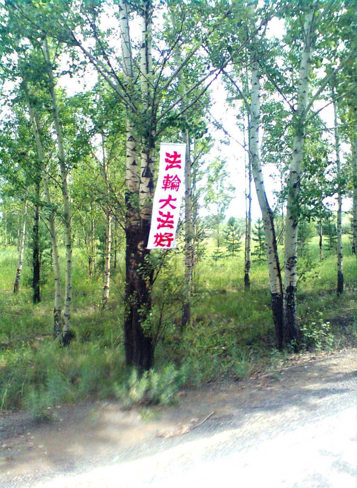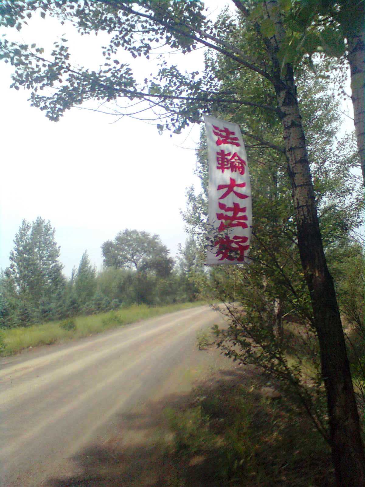 2013年7月20日前夕,在内蒙古多伦县通往北京的公路边的树上及景区的路边上出现了非常醒目的“法轮大法好”的条幅。