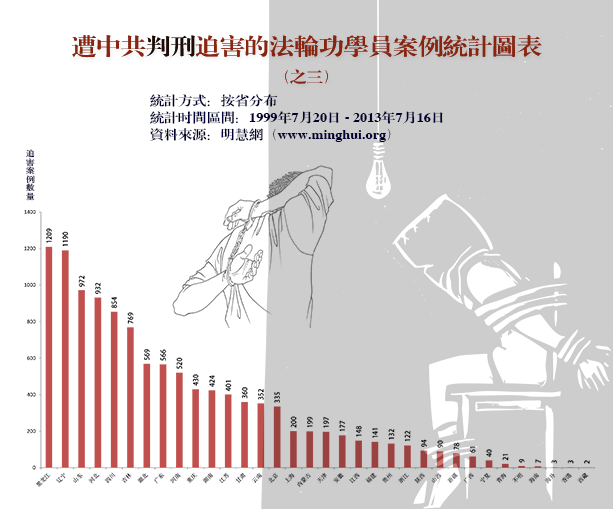 过去十四年来,中共一直以非法判刑的手段对无辜的法轮功学员进行迫害。从1999年7月到2013年7月,明慧网关于非法判刑有11597报道。这些报道发表于迫害尚在发生之时,而不是迫害已经结束之后,每一篇报道都凝聚着法轮功学员冒着风险的努力付出。