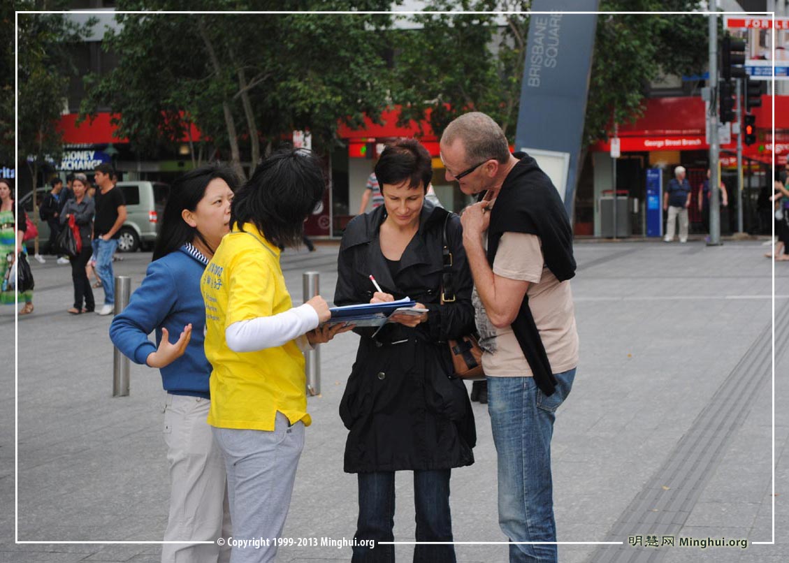 活动中,很多澳洲中西方的民众主动上前签名支持法轮功。