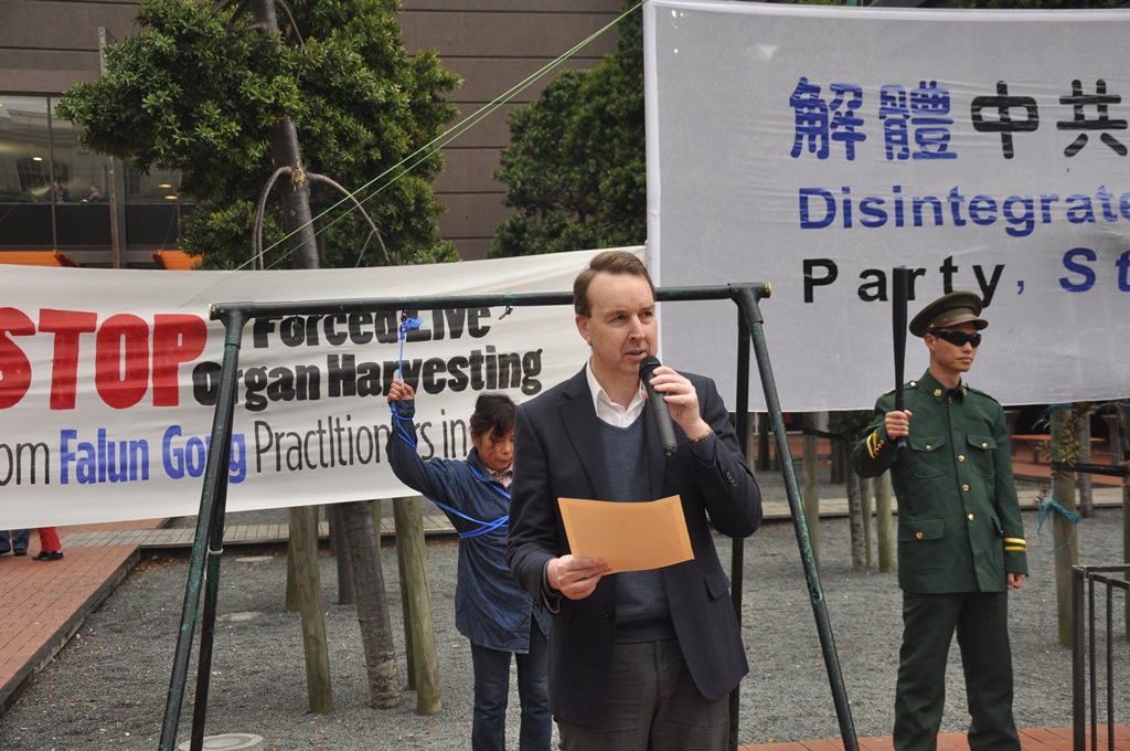著名人权律师Kerry Gore在集会上发言表示:法轮功学员在史无前例的迫害中坚持信仰,所表现出来的容忍与精神力量令人钦佩。十四年来,中共对法轮功学员任意逮捕、拘禁、肉体折磨、洗脑、精神虐待,甚至强奸、性侵犯和活体摘取器官。中共不仅破坏了信仰自由与言论自由,还违反了大量的国际公约。他相信:“正义终有一天会得到伸张!历史表明,迫害人的极权主义政权一定会为之付出代价,那些迫害者也一定会被追究责任和受到相应的惩罚。”