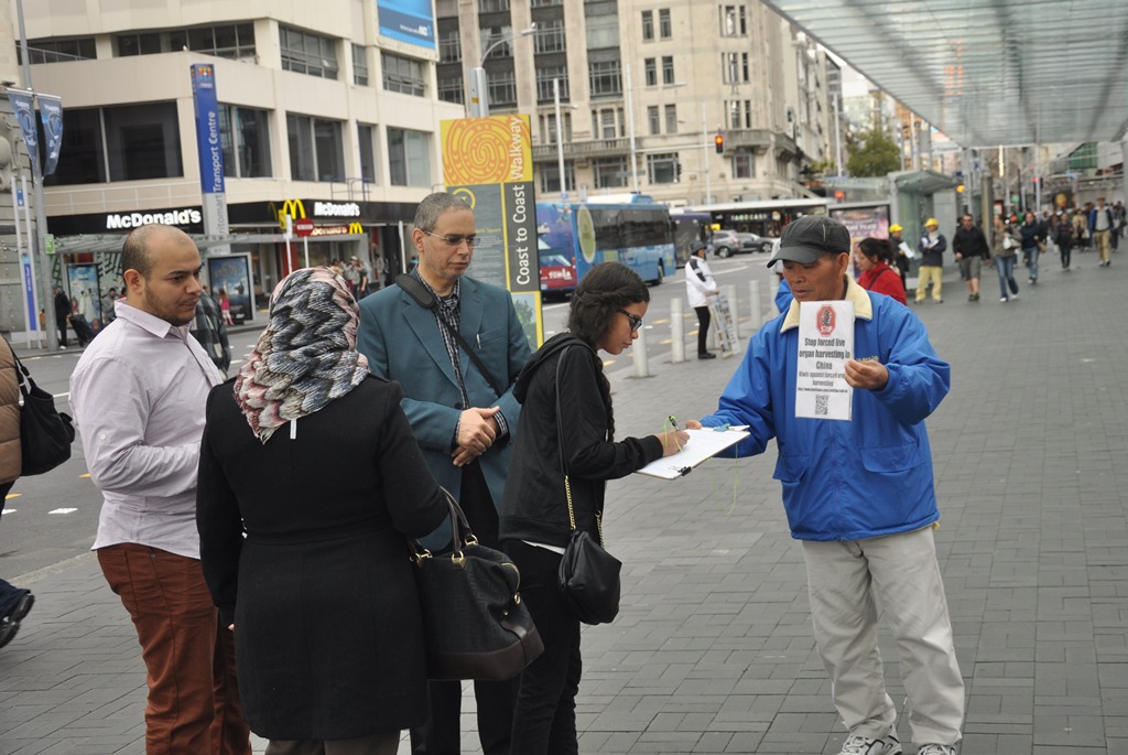 ![]() 法轮功学员向民众征集签名支持,反对活体摘取器官。 |