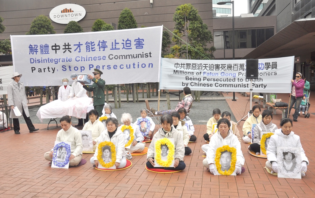 当日,部分新西兰首都惠灵顿的法轮功学员,在中共驻新西兰大使馆门前抗议中共的迫害,并烛光悼念被迫害致死的法轮功学员。