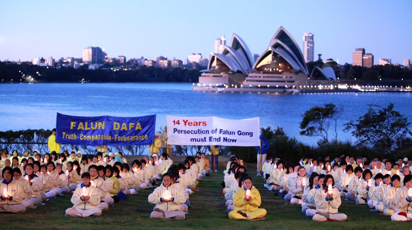 次日,七月二十一日清晨五点半,悉尼的法轮功学员在悉尼歌剧院对岸、悉尼大桥下的Bradfield Park举行烛光悼念活动。