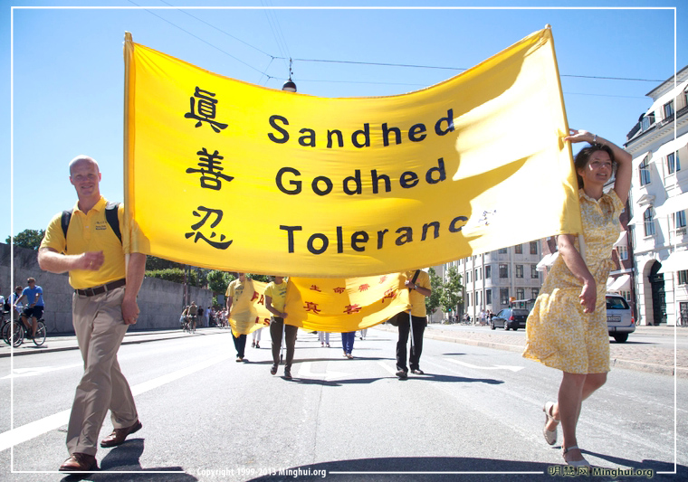 两位住在哥本哈根的中国华侨在看了游行后打电话给丹麦的法轮功学员吴女士。在电话里,她们一边流着眼泪一边讲述着她们观看法轮功学员游行的感受:看了游行我们太感动了,你们这样做不光是为了中国人的人权,你们也是为了世界的人权。有那么多的老年人,在烈日下坚持那么长时间,一口水都不喝,我们感到中国有希望了!