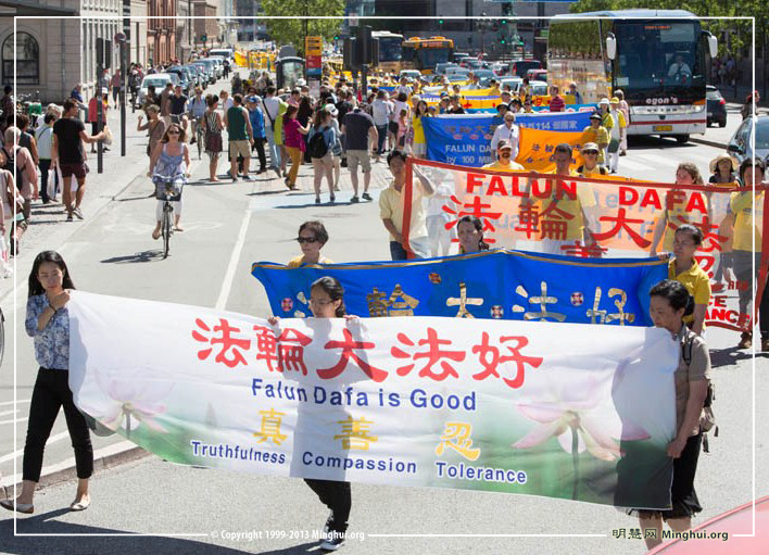 七月二十日,这是一个特殊的日子,中共对法轮功的残酷迫害已持续十四年。二零一三年七月二十日,整个哥本哈根人,几乎都知道法轮功举行和平反迫害的活动。早上丹麦国家电台P4(Danmark Radio P4)采访法轮功学员Benny,并播放了法轮功当天活动的信息,还播出整个活动安排。