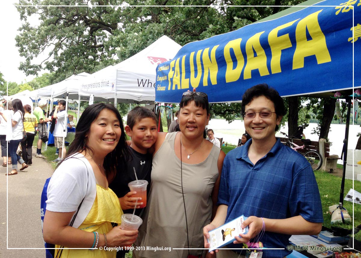 今年七月十三至十四日是第十届龙舟节, 也是明州法轮功学员第八次参加龙舟节了。七月十三日,学员们早早来到摊位前,搭好帐篷,准备好资料,赶在人潮到来之前,以集体炼功的方式,开始了龙舟节讲真相活动。