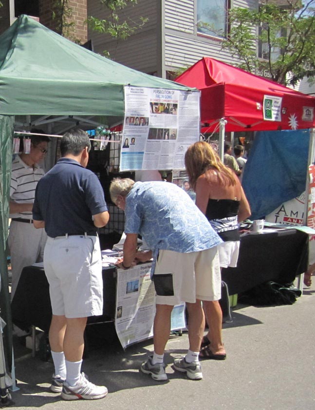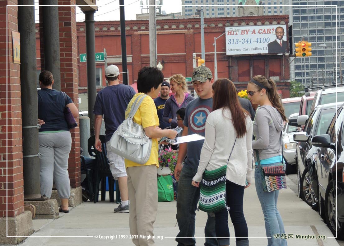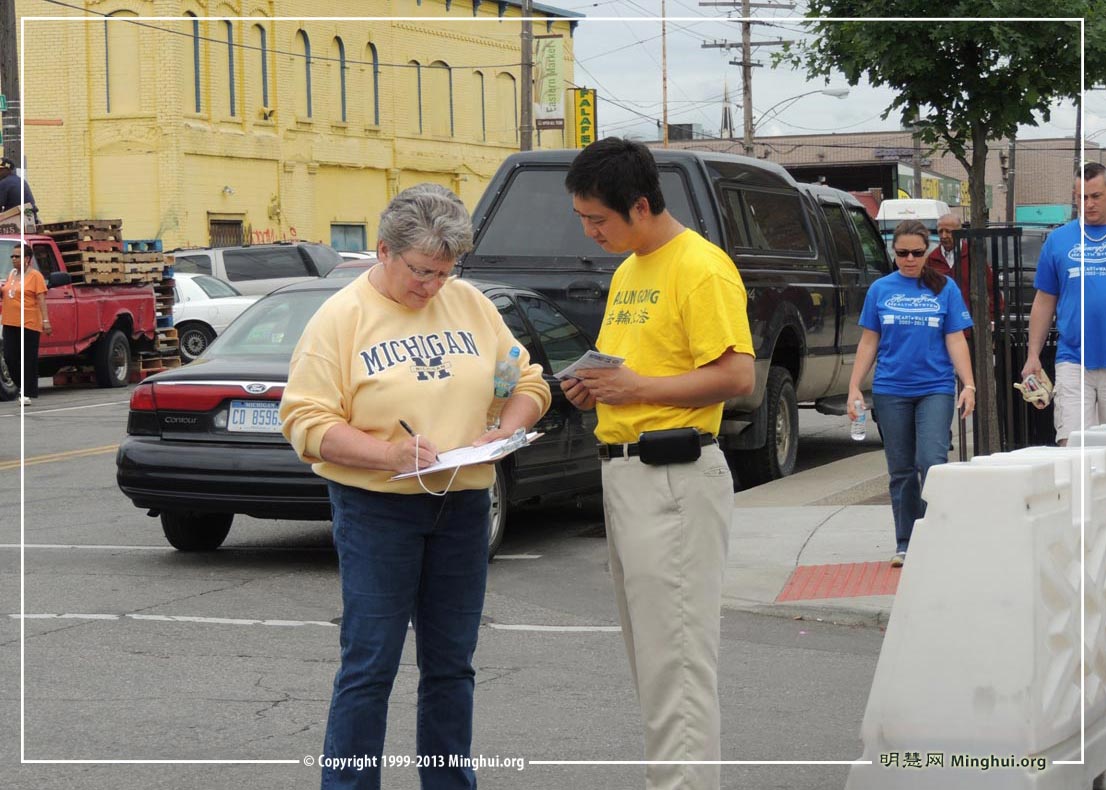 当天下午虽然烈日炎炎,仍有不少路人驻足停留,倾听学员的发言。也有人用手机拍照,开车经过的人主动示意索取真相资料。很多人纷纷对法轮功表示支持。此外,学员还同时进行要求国会议员支持“281号决议案”征签活动。