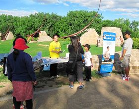 ![]() 游客在了解法轮功及法轮功被迫害的真相 |