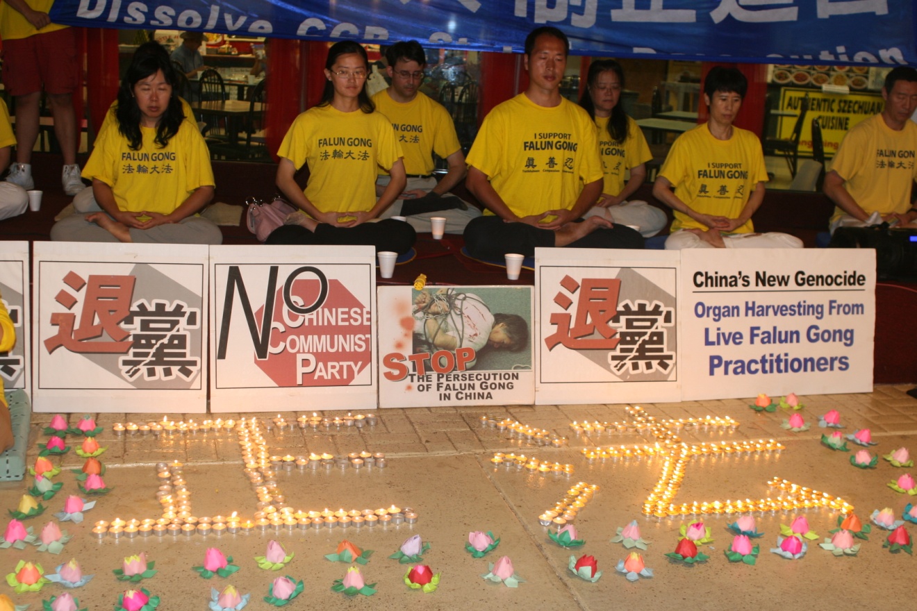 ![]() 图1:纪念法轮功反迫害十四周年,亚特兰大学员举办烛光夜悼。 |
