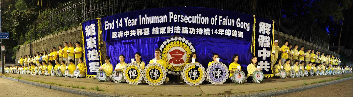 ![]() 二零一三年七月二十日,加拿大温哥华法轮功学员在中领馆前抗议迫害,悼念被中共迫害致死的中国大陆同修。 |