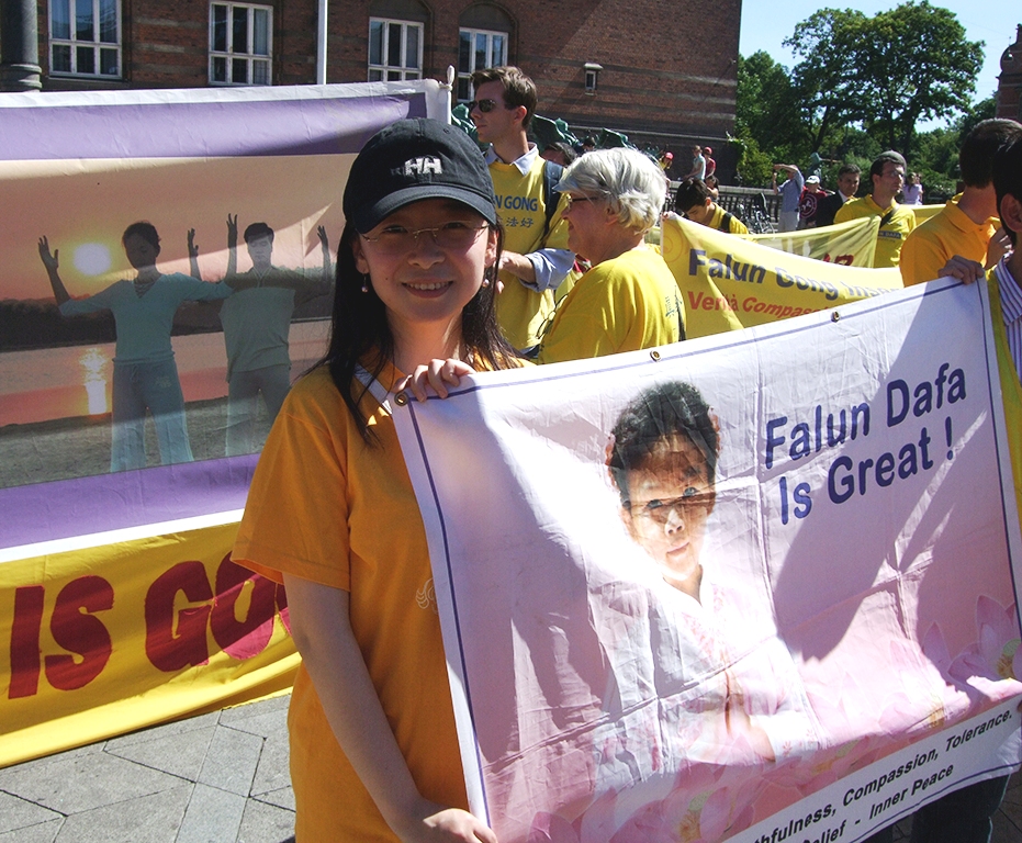 ![]() 二零一三年七月二十日,小金参加在丹麦首都哥本哈根举办的和平反迫害游行 |