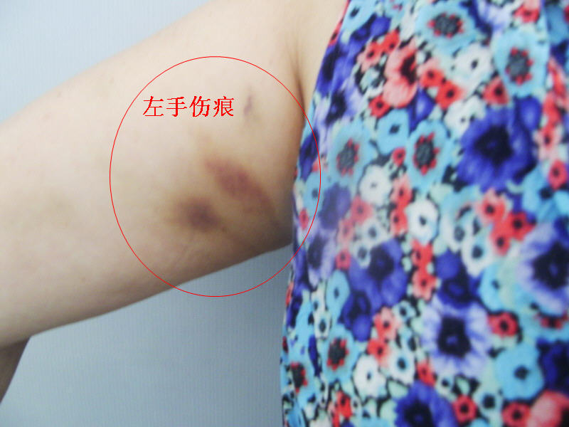 不一会的功夫就来了两个协警,老人家一看就知道被出卖了,劝导朱英源别干坏事,两协警一看,又马上叫来一个特警,三个人拖的拖,拽的拽,抬的抬,老人家坚决不配合邪恶,期间,老人家两手臂,双脚被多处抓伤,硬塞进出租车,被送到洗脑班。