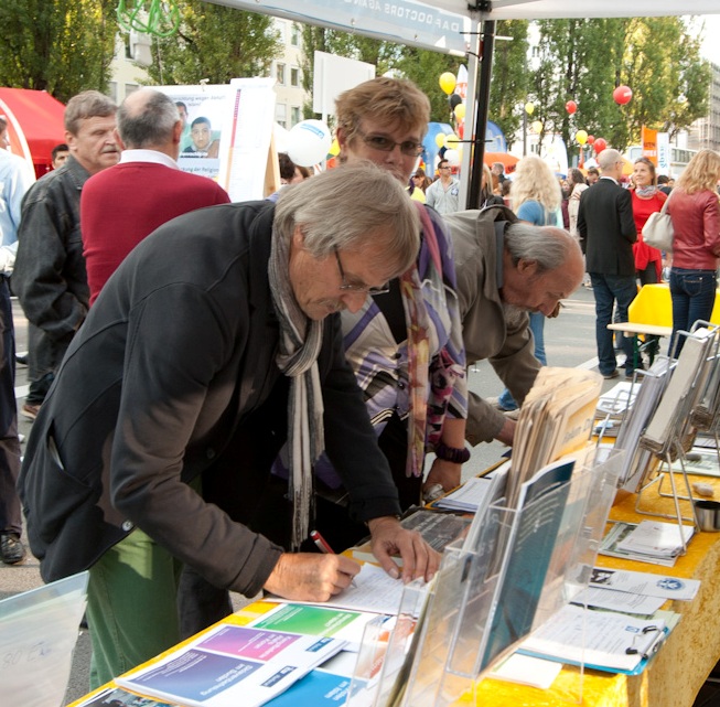 ![]() 图2:慕尼黑民众签名制止中共迫害法轮功 |