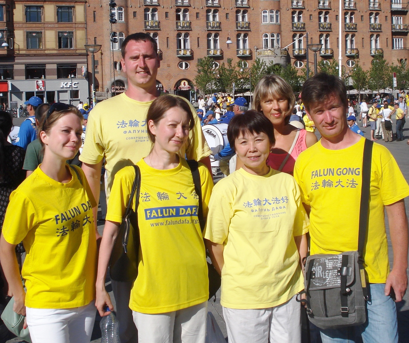 ![]() 图1:亚力山大(后排男士)和其他来自俄罗斯的法轮功学员在丹麦议会大厦广场上 |