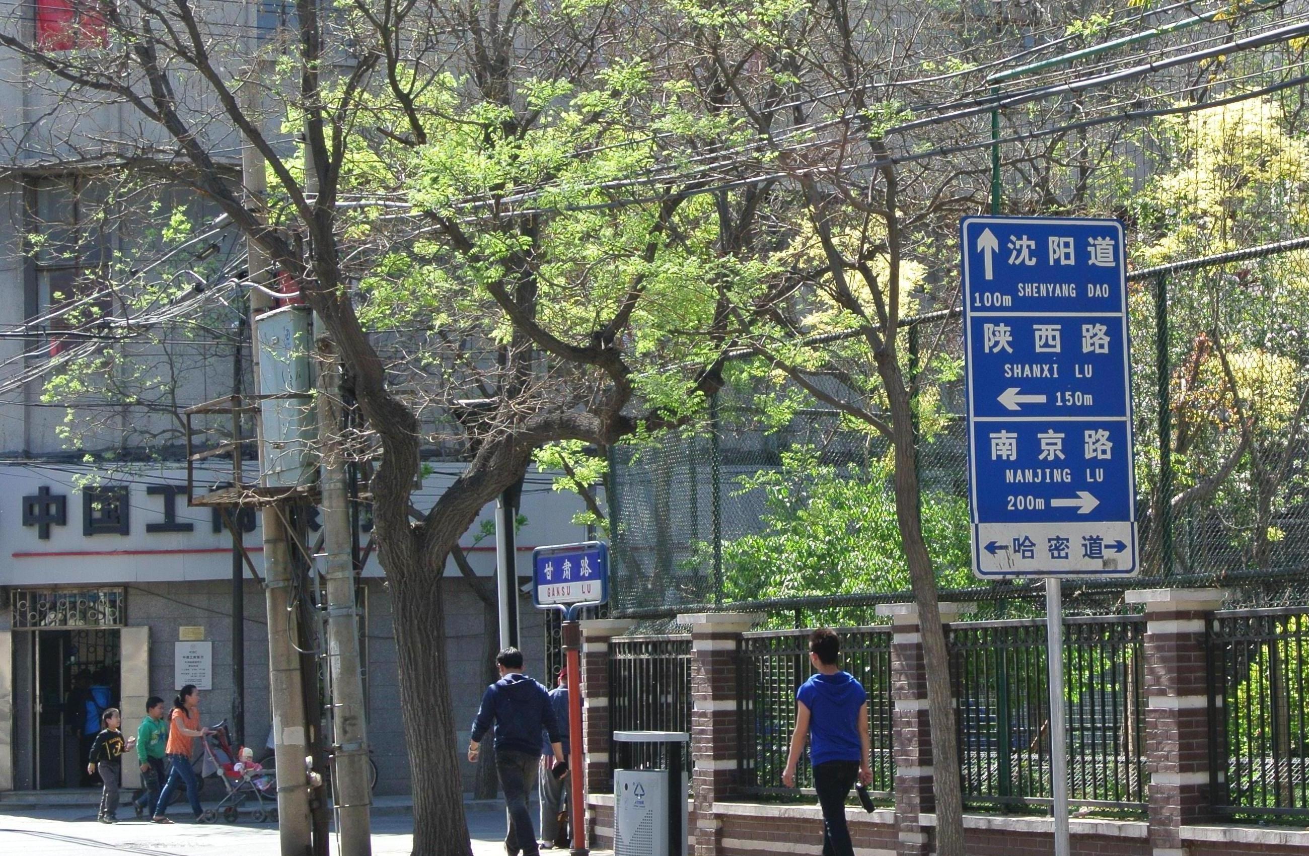 ![]() 图2:甘肃路和哈密道交口右拐至南京路 |