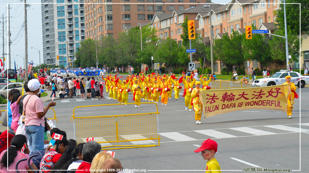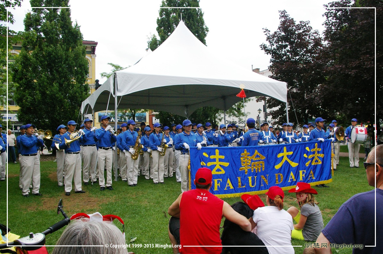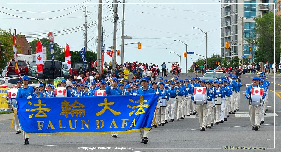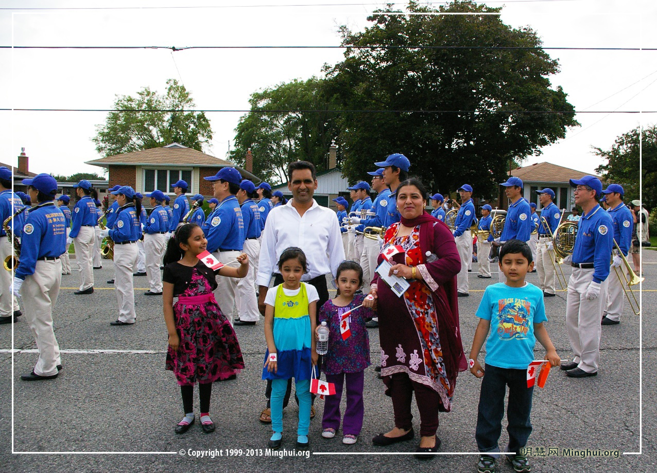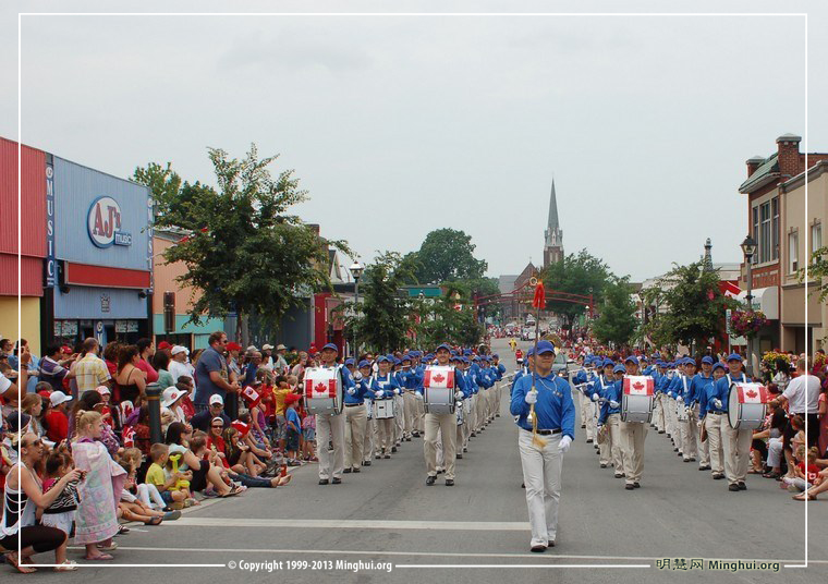 今年的国庆节,多伦多法轮功学员组成的天国乐团参加了两个游行:尼亚加拉瀑布(Niagara falls)国庆游行(上午11点)和大多伦多士嘉堡市(Scarborough)国庆游行(下午4点)。主办方表示:“我们这里的每个人都很喜欢他们(everyone love them!)。”西人观众感谢:给我们带来这么美好的演奏;华人观众感叹:法轮功是在全世界受欢迎的团体,中国不该迫害!