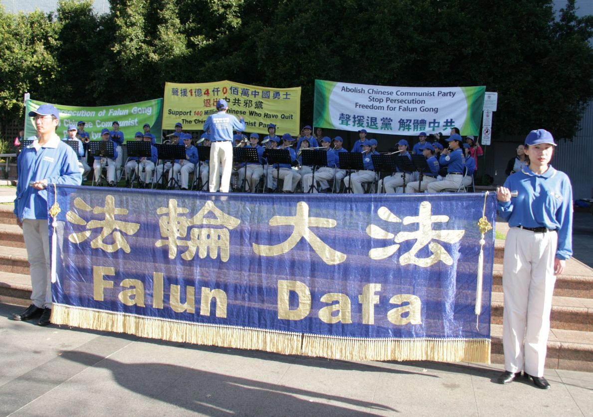 '图3:法轮功学员组成的天国乐团到场演奏'