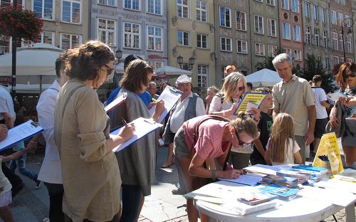'格但斯克市民、游客纷纷签名,呼吁制止中共强摘器官暴行'
