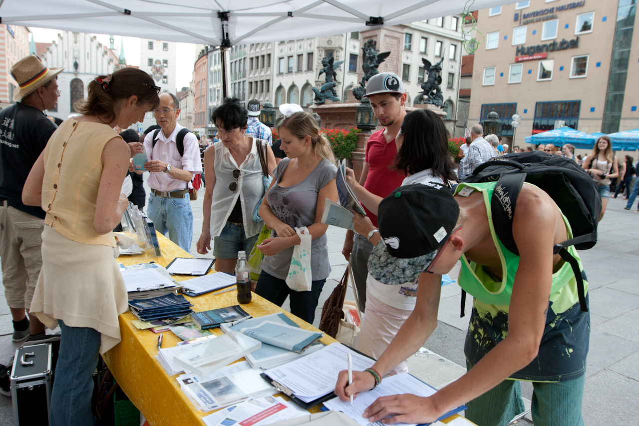 ![]() 图:慕尼黑玛琳广场上,人们签名谴责中共活摘器官 |