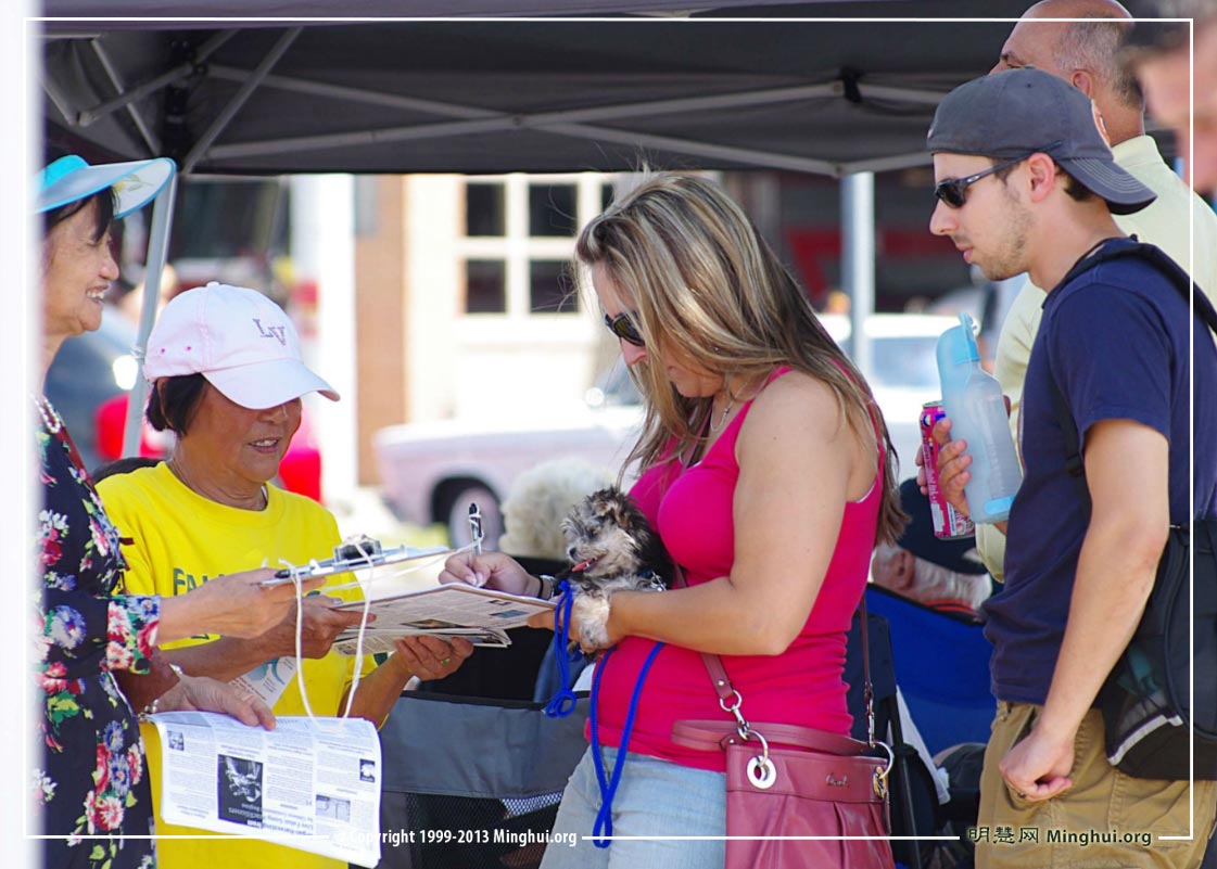 二零一三年的夏季,密西根学员一直利用各种场合,通过征集反对活摘法轮功学员器官的签名,向当地民众传播真相,并把民众的呼声传递到密西根州各国会议员办公室。