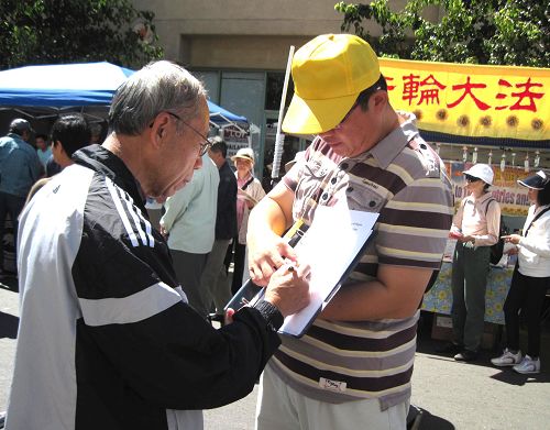 很多人看到征签板上有关活摘器官的介绍后表示:“这太可怕了!太邪恶了!真是个惨剧,我支持你们反迫害。”他们签完后感谢学员做出的努力。
