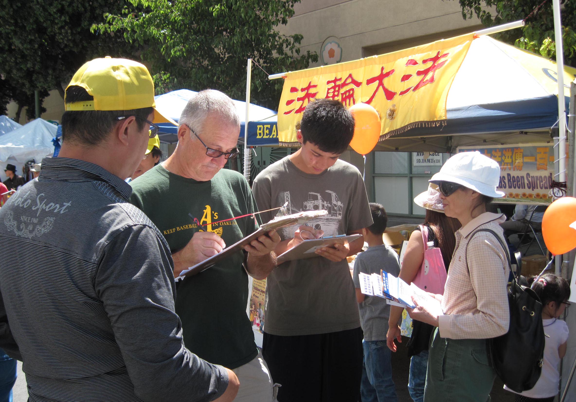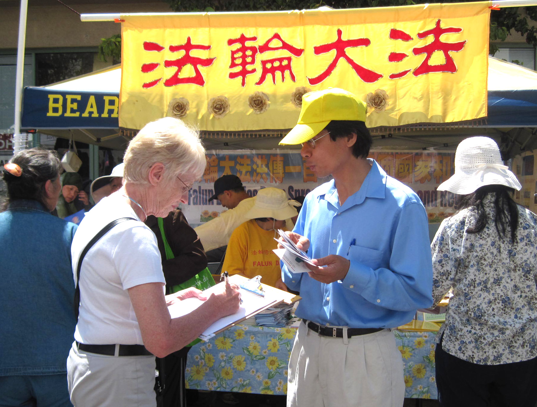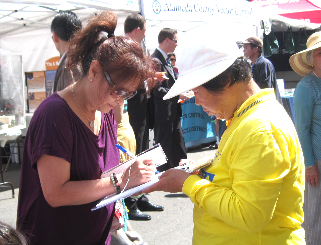 阿拉米达市的霍尔曼女士(Hollman)表示,她有个炼法轮功的朋友,她知道法轮大法好,也知道在中国发生的迫害。她一看到征签表上写的反对活摘器官,马上就拿过笔来签字。她说:“活摘器官是非常邪恶的,非常邪恶,中共什么时候才会停止迫害。”