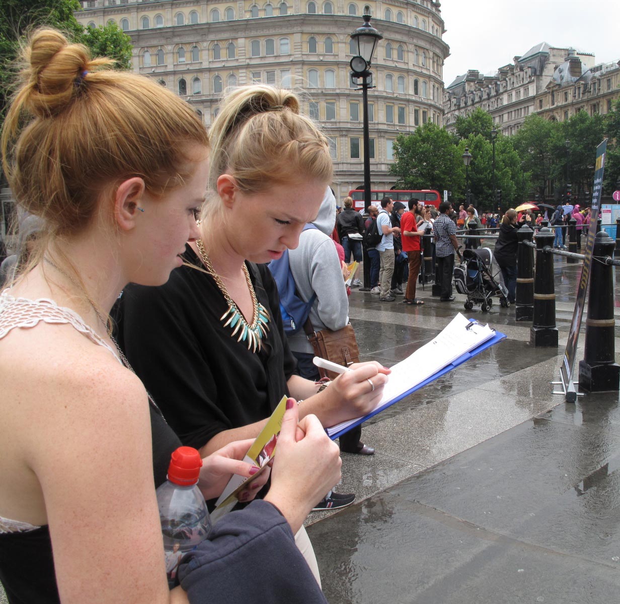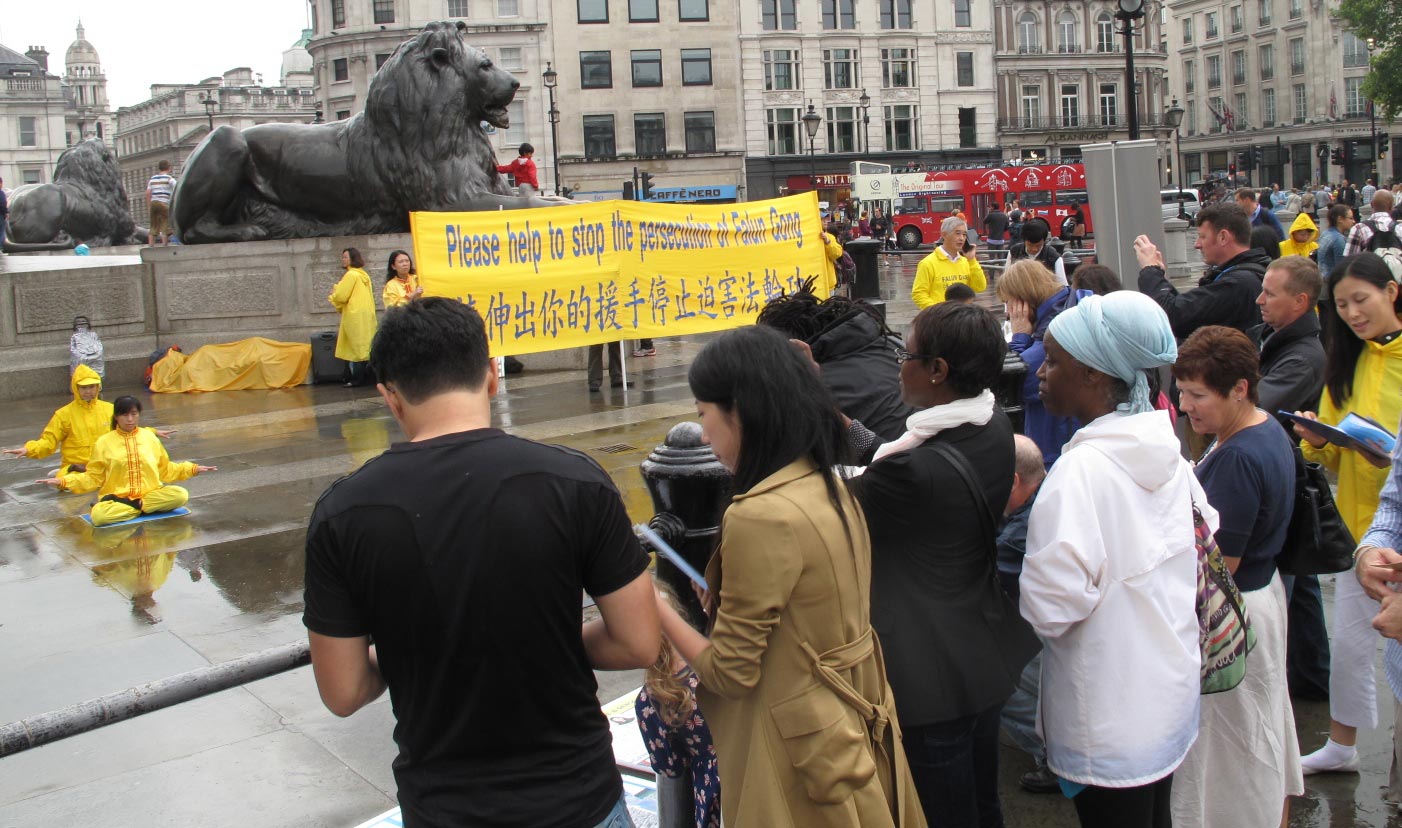 英国法轮功学员几年来一直坚持每周末在位于鸽子广场附近的圣马丁广场向广大民众讲真相,近几个月来,他们又开始定期到离鸽子广场不远的伦敦唐人街举行集体讲真相、反迫害、劝三:退.活动,最近两个月来,英国法轮功学员也在积极支持由“医生反对活摘器官协会”(DAFOH)发起的征集签名活动,在圣马丁广场和唐人街征集签名,呼吁联合国采取行动,制止中共在中国活摘法轮功学员器官的罪恶行径,目前,反对中共强摘器官征签活动正在全英国范围内逐步展开。