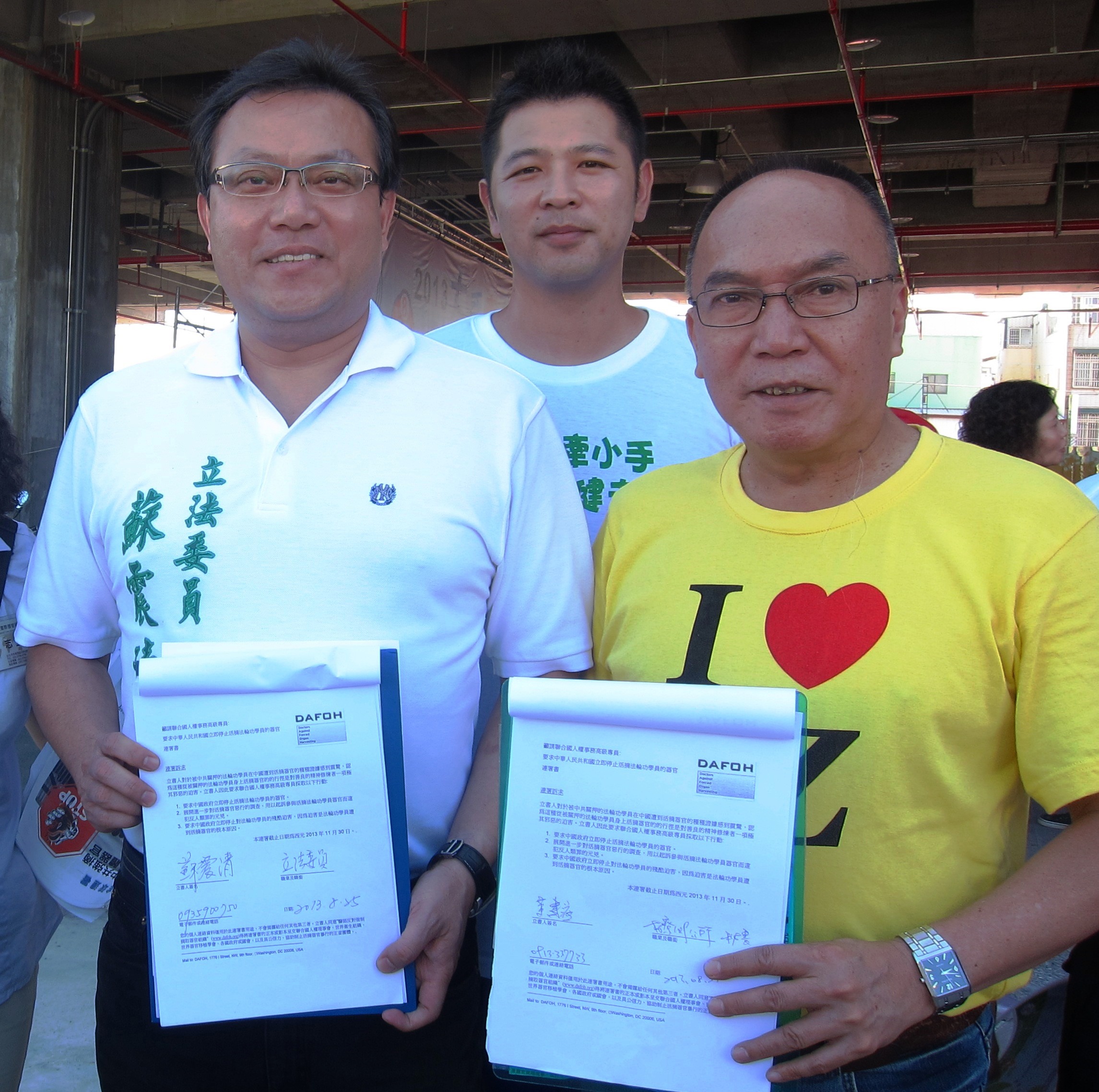 ![]() 图说1:立法委员苏震清(左)潮州镇长洪明江(右)签名连署谴责中共,呼吁中共立即停止活摘法轮功学员器官的罪行。 |