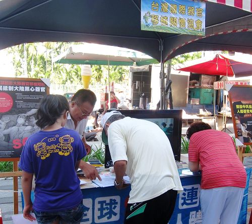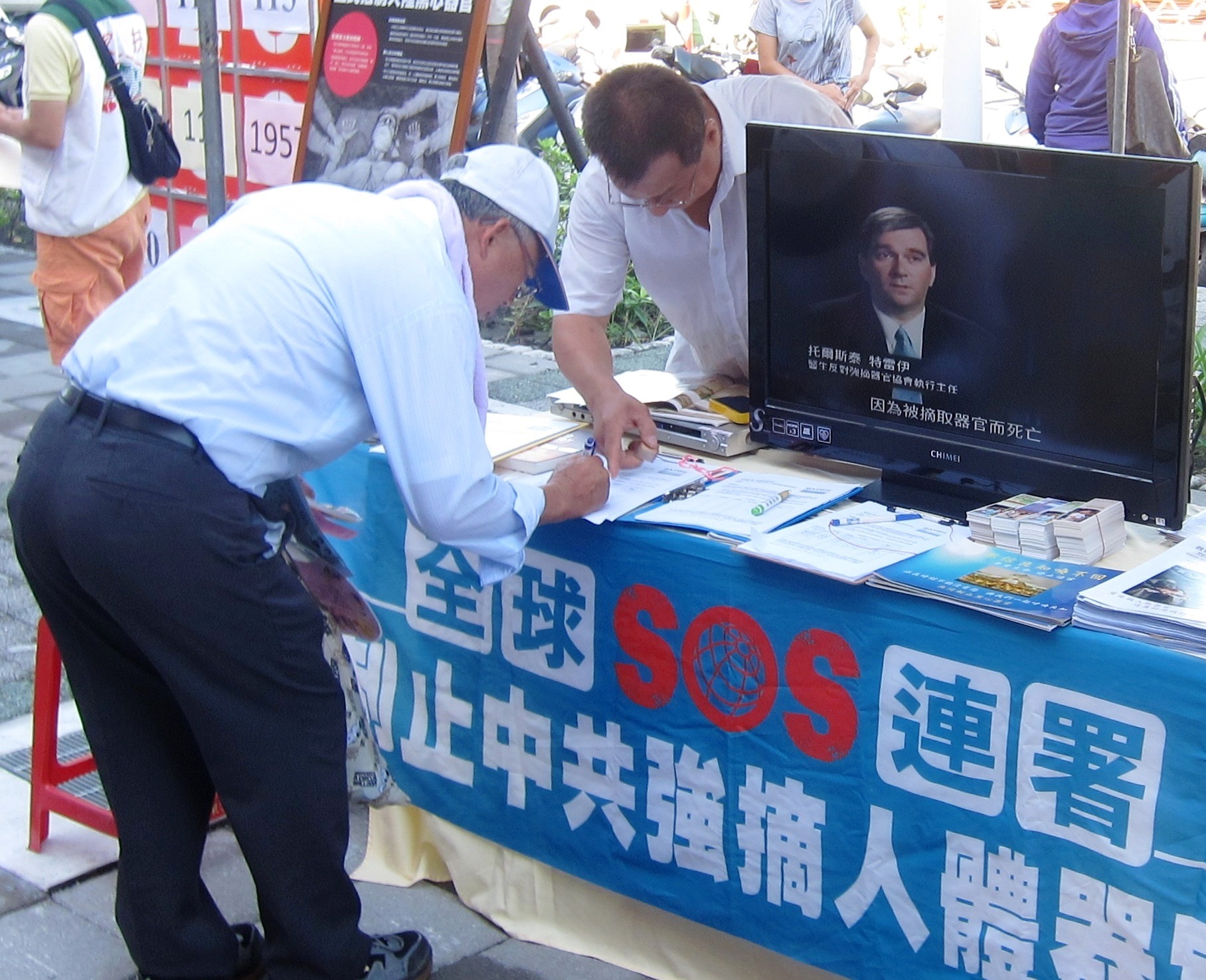 当天,晴空万里,参加健走的民众,回到设在潮州火车站广场的终点站时,都驻足在台湾器官移植关怀协会的征签摊位前,有的专注看着电视播放的真相影片,有的认真的阅读真相资料;当他们了解中共活摘事实真相后,都表震惊不已,立法委员苏震清、潮州镇长洪明江及多位民意代表和现场民众,都纷纷签名谴责这惨绝人寰的罪恶,共有一千多人签名连署。