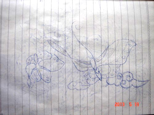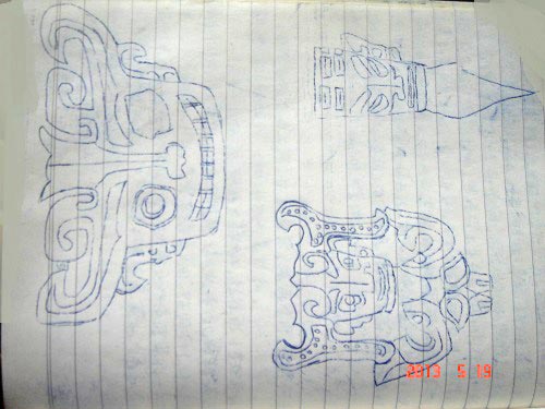 蜀绣分单面绣和双面绣,蜀绣通常一根丝线剖成几根用。这几个图案是为三星堆旅游景点绣在绣帕上出售用的。象这类图案很多,还有大幅的绣品,如我在监狱遭迫害时曾绣过出口到韩国的女式朝鲜礼服,领口和袖口上全是满绣。