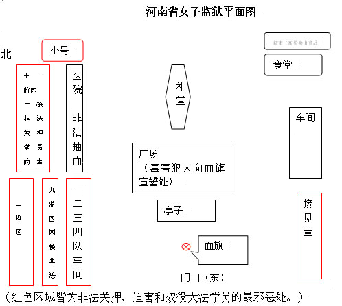 此监狱共有十一个大队(监区),另设有狱政科、教育科、后勤科等,直属一分队(岗哨队)。新乡女监专门在狱内设有两个关押、迫害法轮功学员的监区:一个是九监区(原十一监区);另一个是五监区(作为迫害法轮功学员的特别监区),当然其它监区也分别关有法轮功学员。五大队是后勤队,晚秋作物的超市属五队管辖,恶警们也知道法轮功学员道德高尚,不拿别人的东西,所以把超市交给十几个法轮功学员管理,在超市每天服苦役,为狱警挣钱。三大队是无期、死缓、暴力重刑犯监区,也有比较坚定、不配合邪恶、不“转化”的大法弟子,被恶警送到此队进行超时、超强度的苦役迫害。法轮功学员多数被非法集中关押在九监区(原十一监区),她们当中有六十多岁、七十多岁的老年妇女,有一、二十岁的年轻姑娘,有的被非法判处十五年以上重刑,被判十年、八年的很普遍。