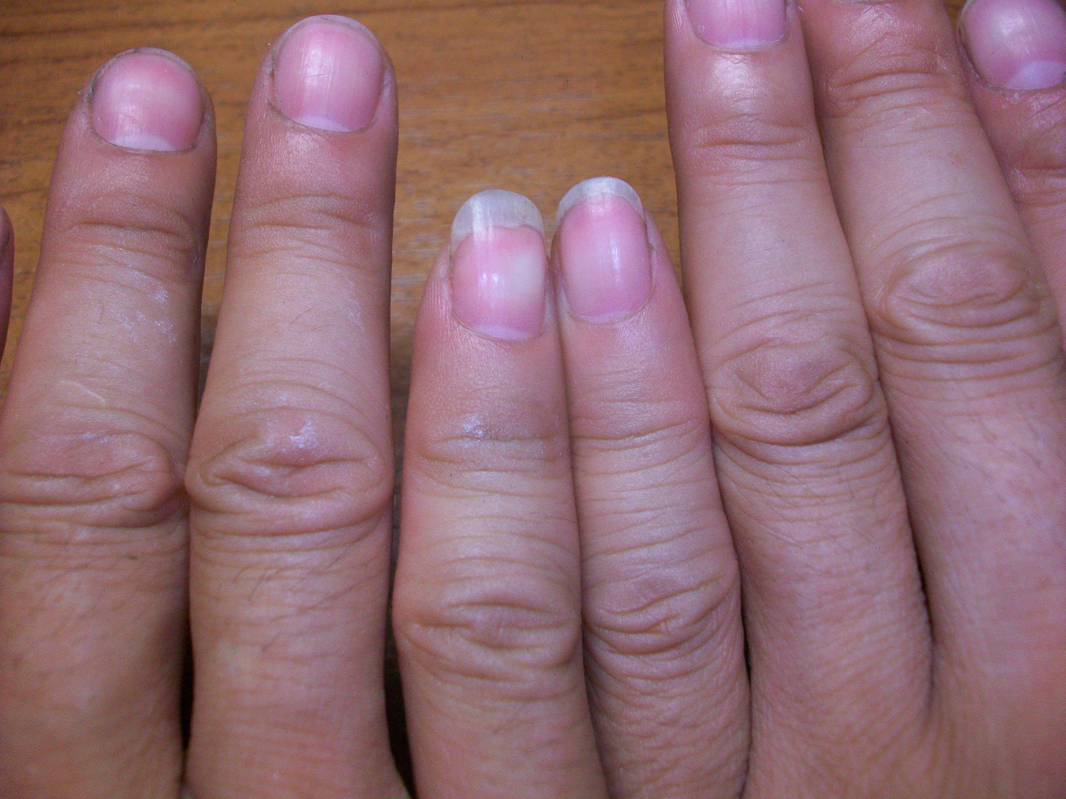 ![]() 图为现在仍然没有长圆的右手小手指(左右对比) |