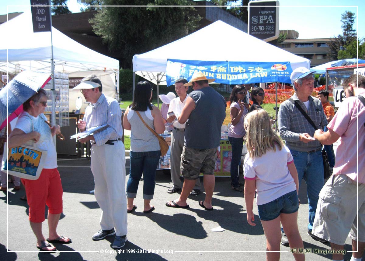 今年的艺术节,人潮川流不息。组织者估计有四十万人参加了活动。法轮功学员星期六一大早就在组织者免费提供的自由言论区搭好摊位,摆好展板,向人们曝光中共活摘法轮功学员器官的暴行。