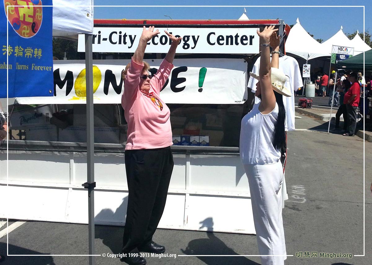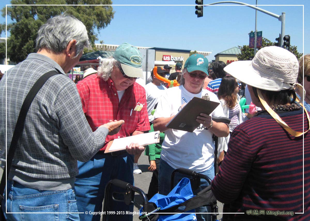 另一位佛利蒙市居民朱迪思·麦克琳蒂(Judith McLrinty)径直走到法轮功学员的摊位要求签名。她说:“我知道在中国发生的对法轮功的迫害。十年前我就知道了。迫害是不对的。中共对中国人非常残酷。应该让更多的人知道。我支持你们的行动。”