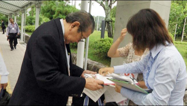 【明慧网二零一三年九月十日】二零一三年九月二日至七日,第十三届亚洲脏器移植大会及日本脏器移植大会在日本的京都国际会馆举行。来自亚洲各国约两千名医生、医务工作者及相关人士参加会议。在这期间,日本法轮功学员也充分利用这一机会,揭露中共强制活体摘取法轮功学员器官贩卖牟利的暴行,并以征签方式呼吁各界共同制止这种罪恶。