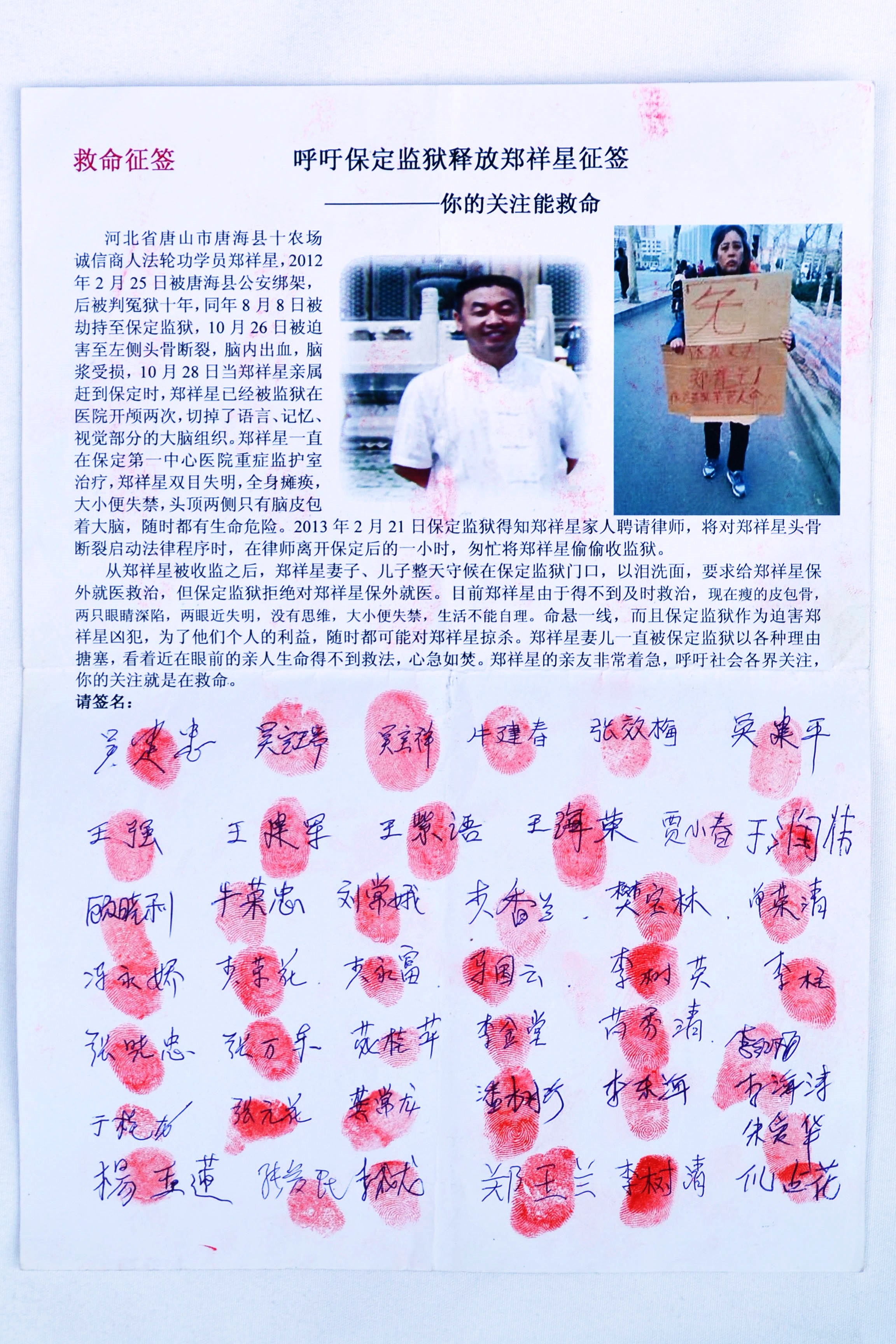〖明慧通讯员慧如来稿〗为营救被中共非法关押、身处危险之中的法轮功学员郑祥星,我地在民众中征签,截止到二零一三年七月十四日,我地有三百六十二位百姓签名按手印。老百姓在签名时表示,希望世上的好人多些,共产党尽害好人,这都是“奸臣害忠良”。