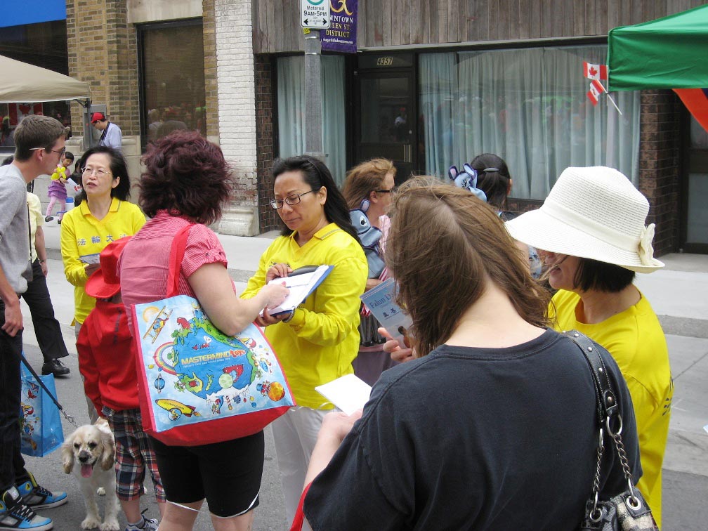 多伦多法轮功学员近期每周末在各地铁站、旅游景点、超市、各种户外活动展开征签活动,到十三日为止,给联合国人权组织的征签(Petition to the UN Human Rights High Commissioner Calling for an Immediate End of Forced Organ Harvesting From Falun Gong Practitioners in China)已达三万两千人,给加拿大政府的征签(Urgent Appeal to the Canadian government to call for an end of unethical organ harvesting from Falun Gong practitioners in China)已达两万两千人,一共五万四千人签名,谴责中共活摘法轮功学员器官,呼吁停止迫害。签名活动还在继续进行中。