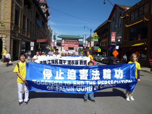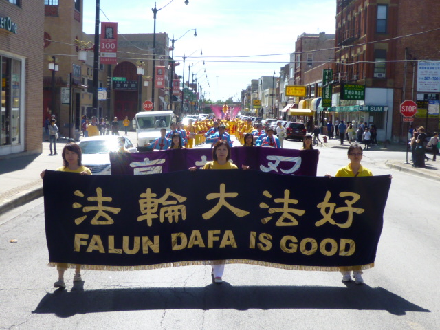 美中法轮功学员芝城南华埠游行声势浩大。 |
