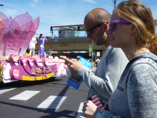 今年五月刚刚从大陆来美的原清华大学法轮功学员虞先生表示,走在游行队伍中,感到中国城的民众对法轮功的热情和欢迎,他说:“去掉了谎言的蒙蔽,人人的内心都会分清善与恶,美与丑是什么。”
