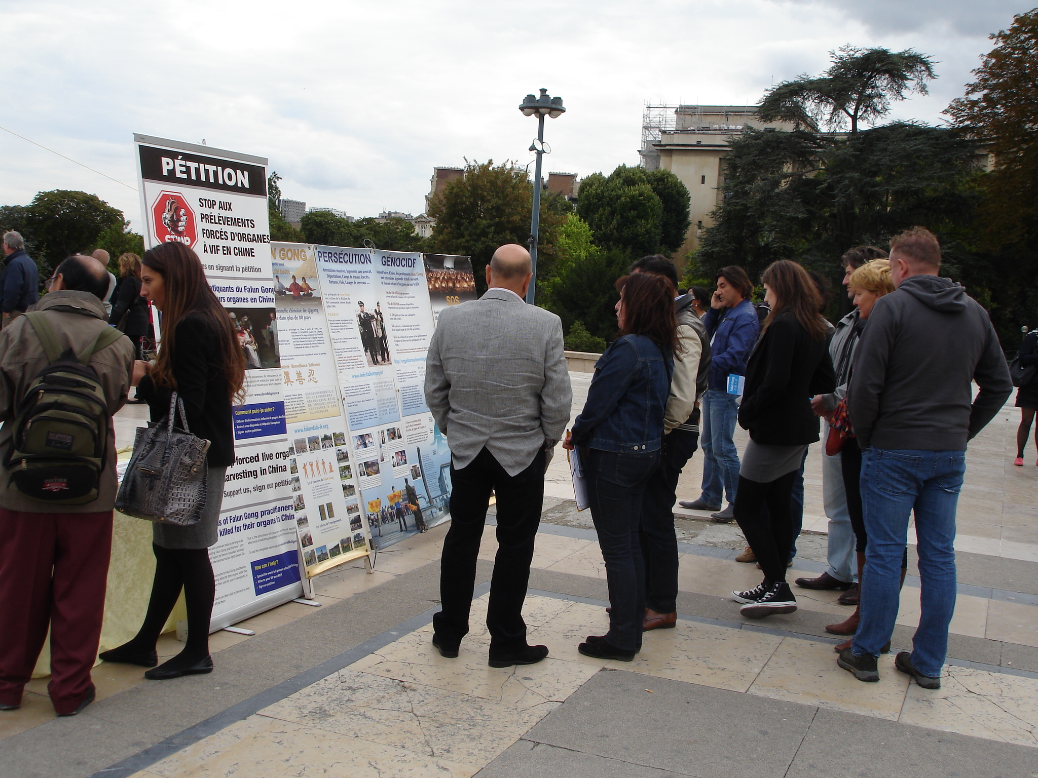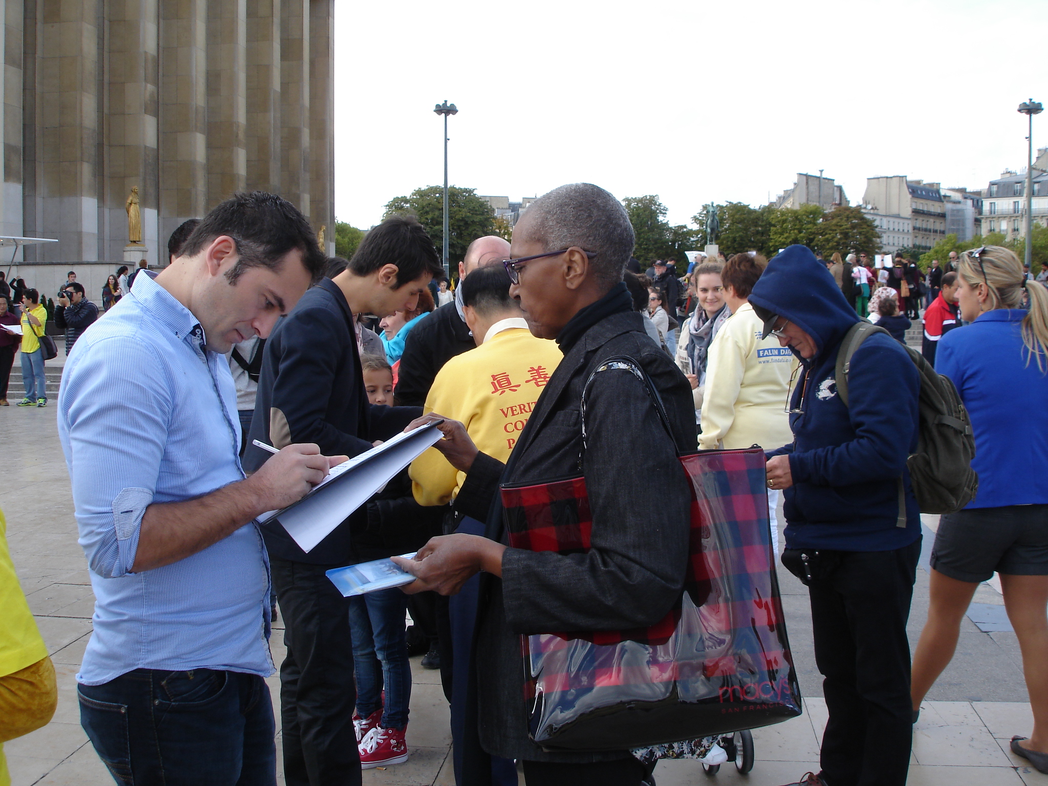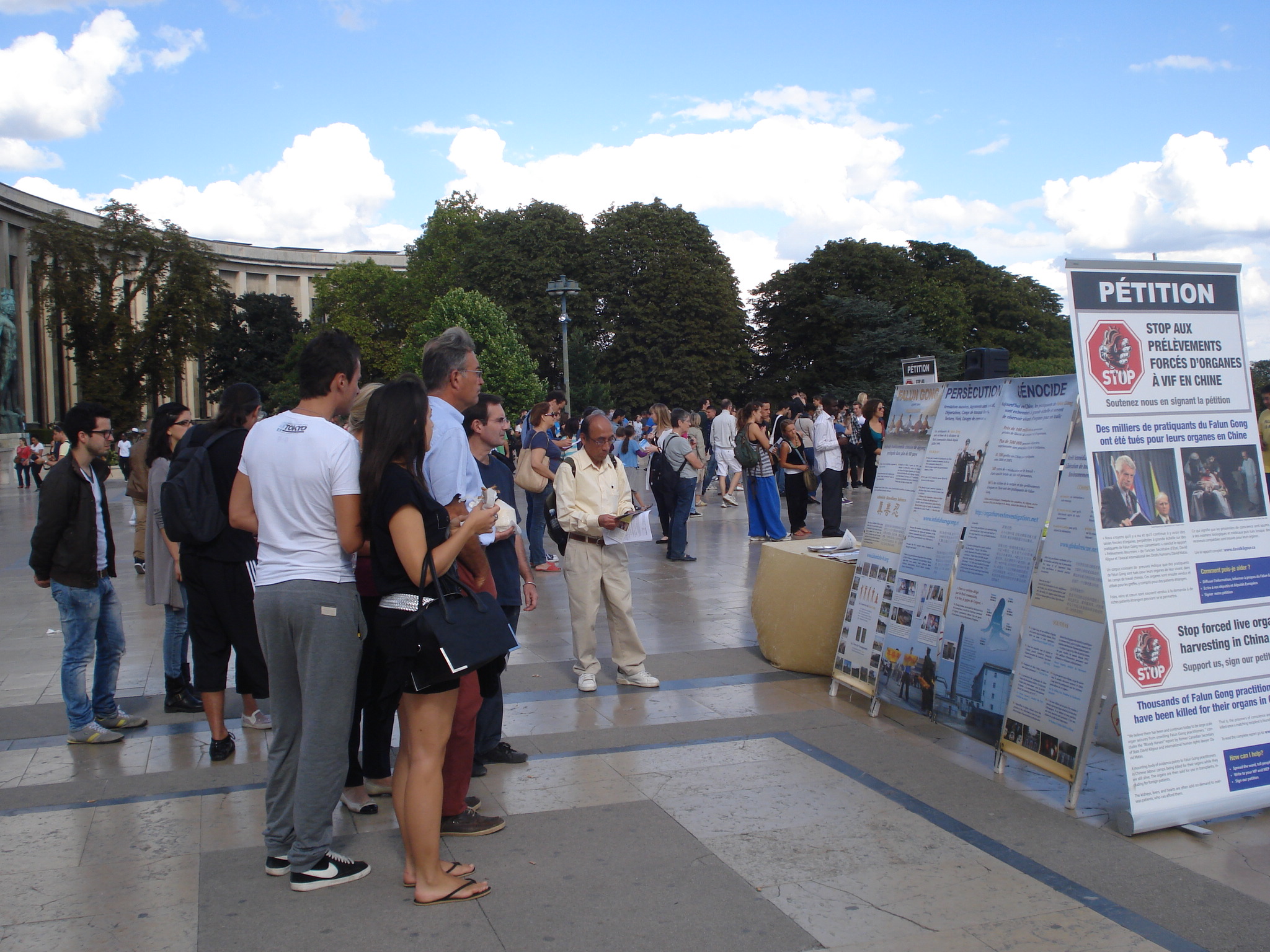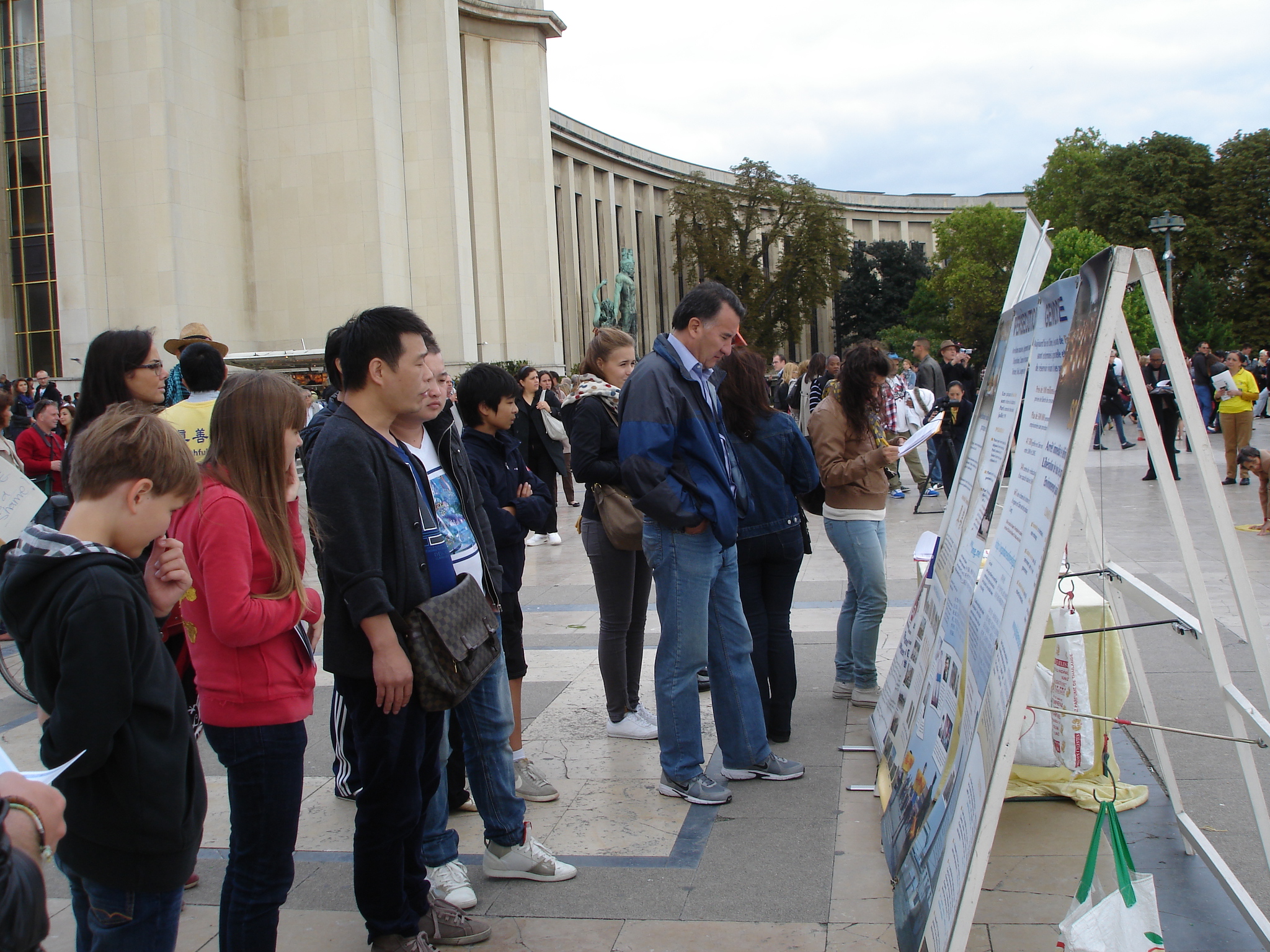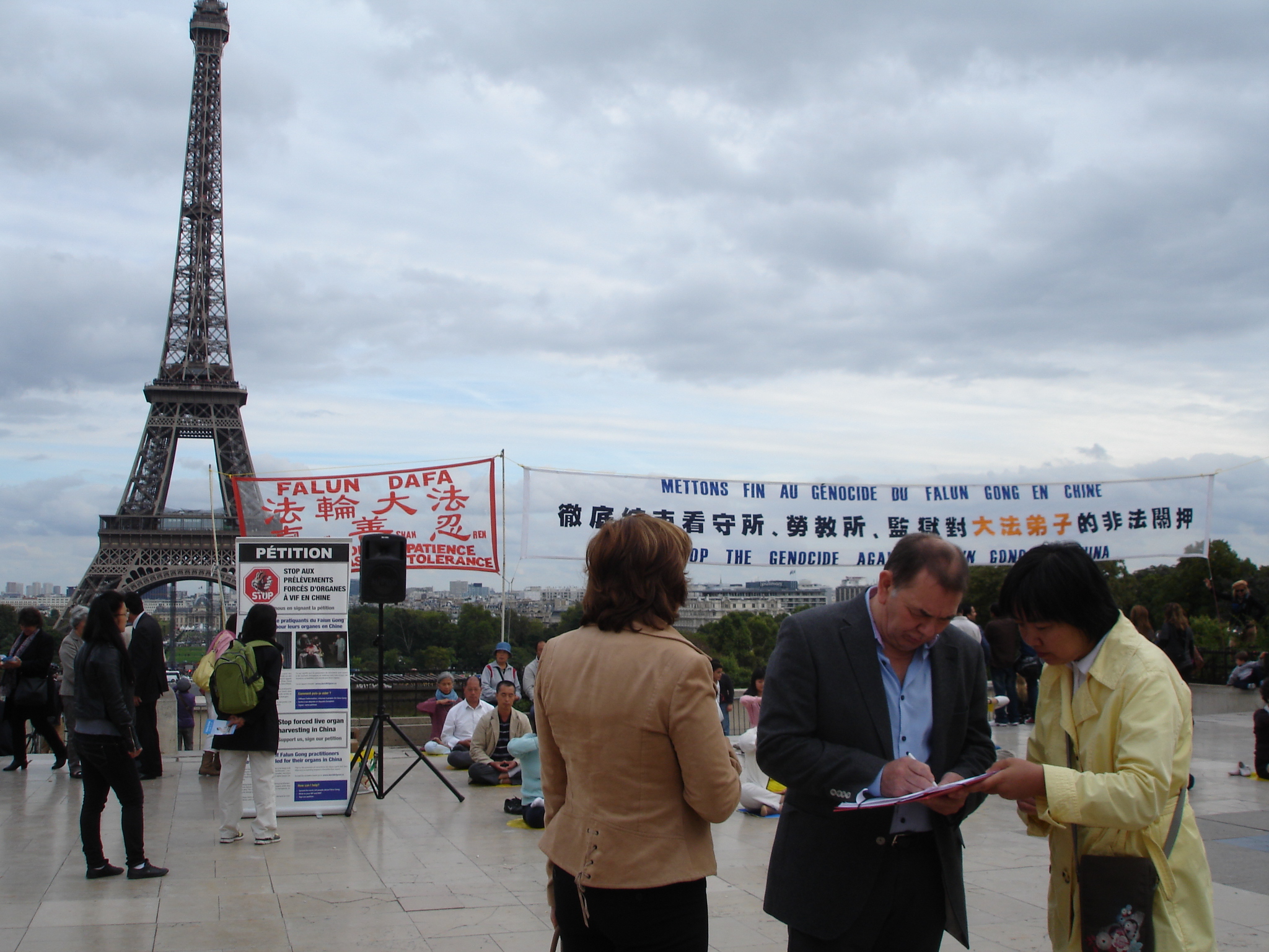 ![]() 图2-4:法轮功学员在巴黎埃菲尔铁塔前传播法轮功的真相,许多民众驻足观看真相展板,了解真相。 |