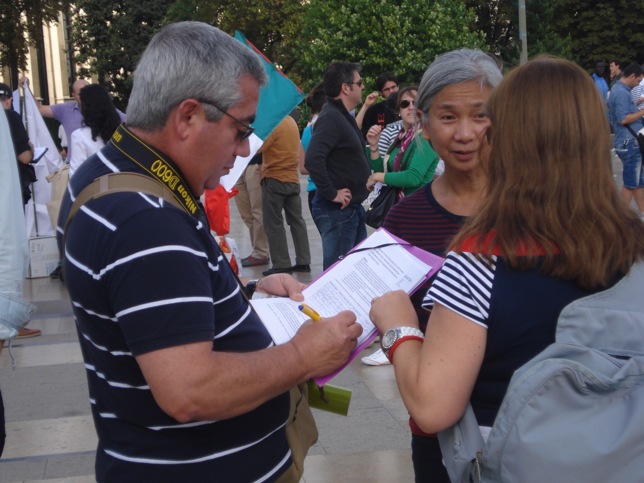 ![]() 图5-7:了解真相后的人们,在征签表上签名,支持制止中共活摘法轮功学员器官的罪行。 |