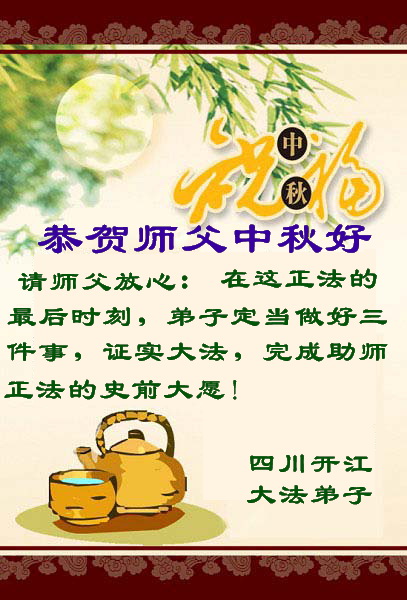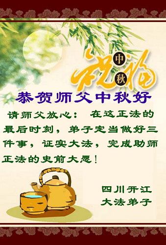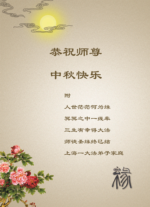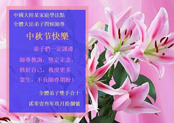 值此中秋佳节之际,借助小小贺卡一张,我们加拿大卡尔加里的大法弟子向师尊敬贺中秋节快乐!