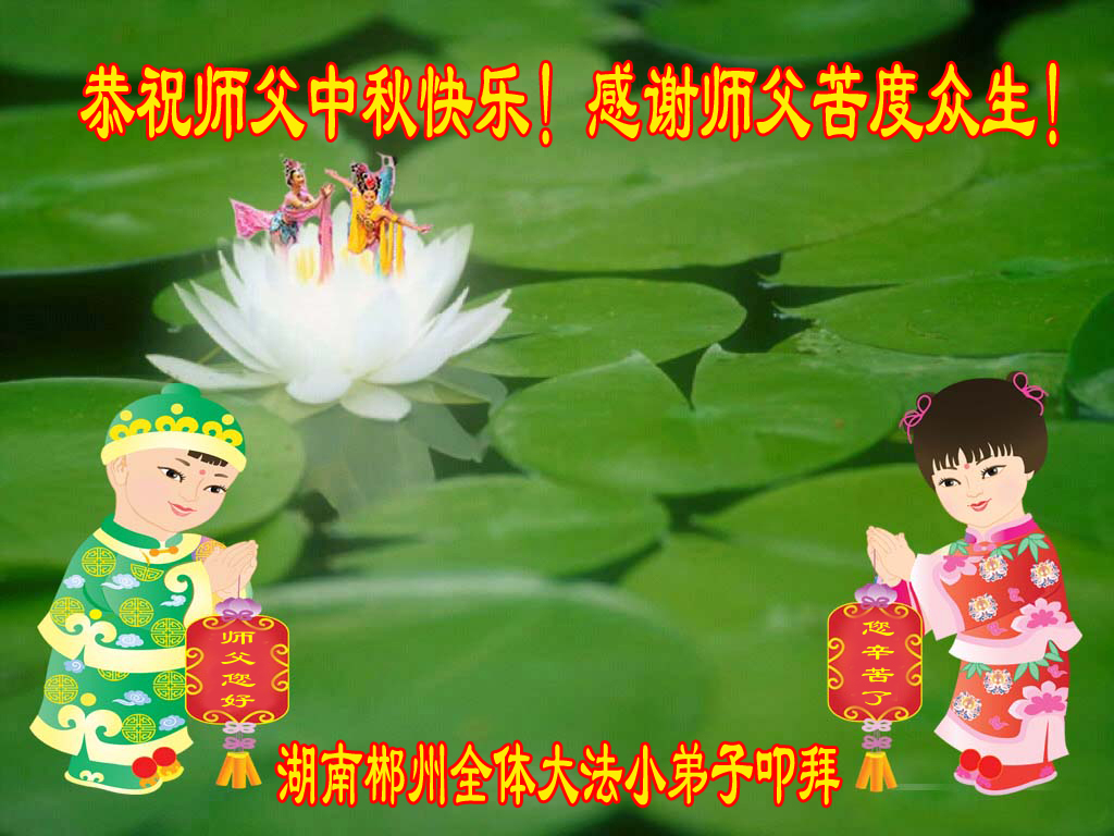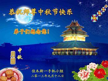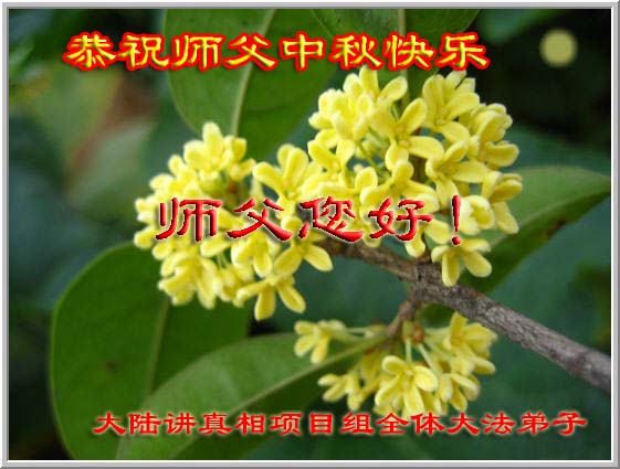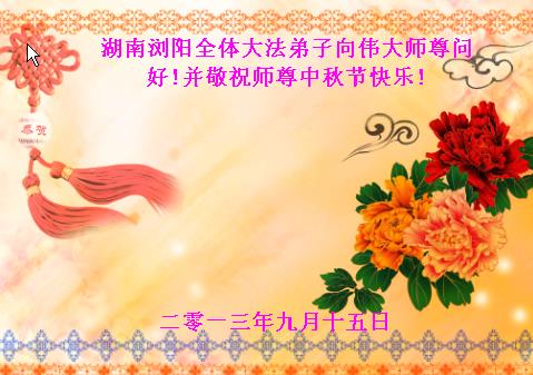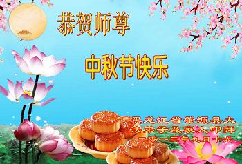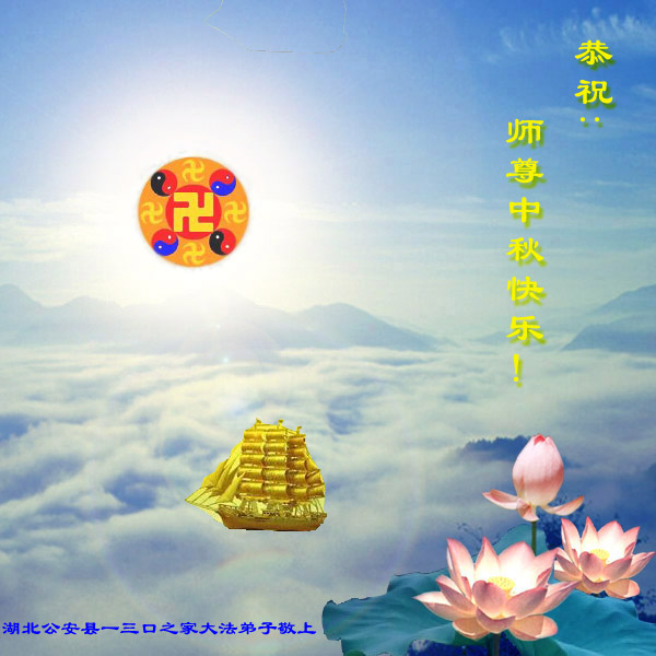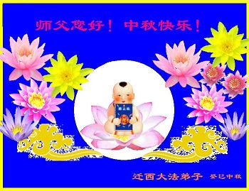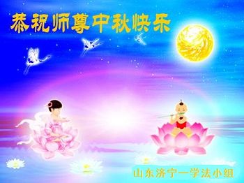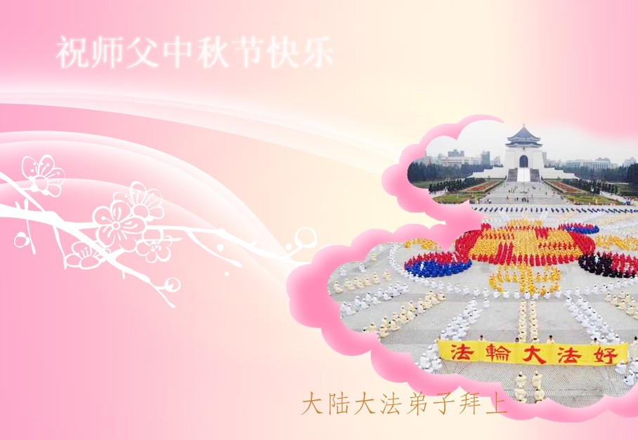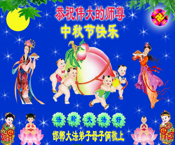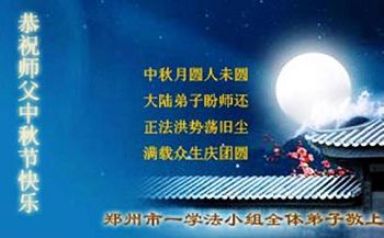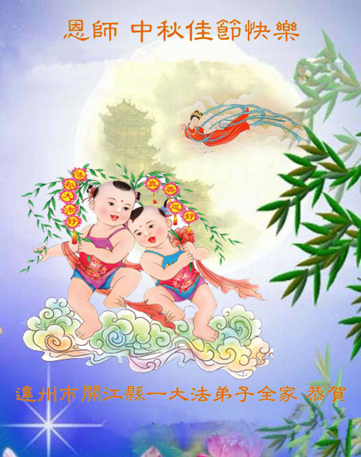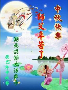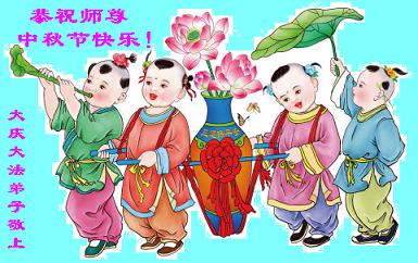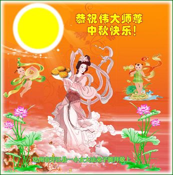尊敬的师父,您好!一年一度的中秋佳节再度来临了。法国大法弟子在这象征阖家团聚的节日里向慈悲伟大的师父问好!