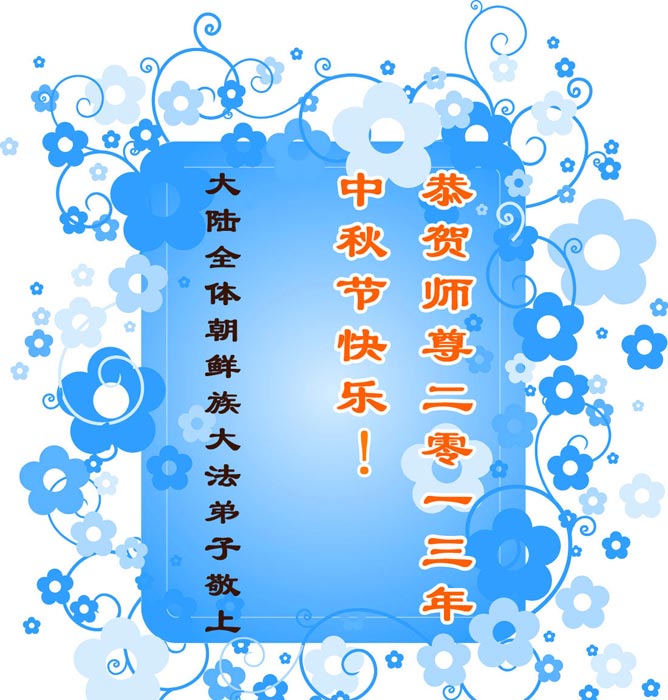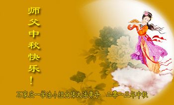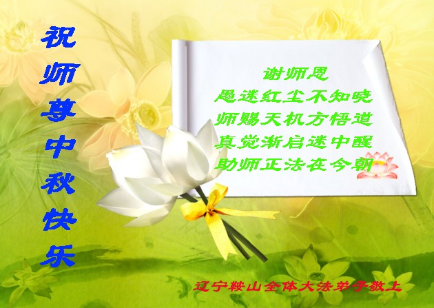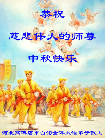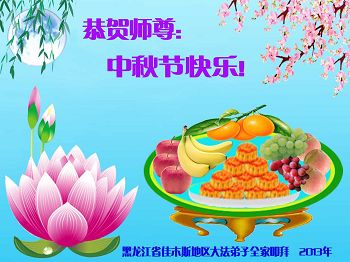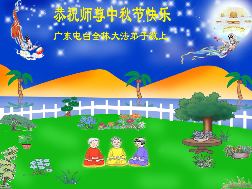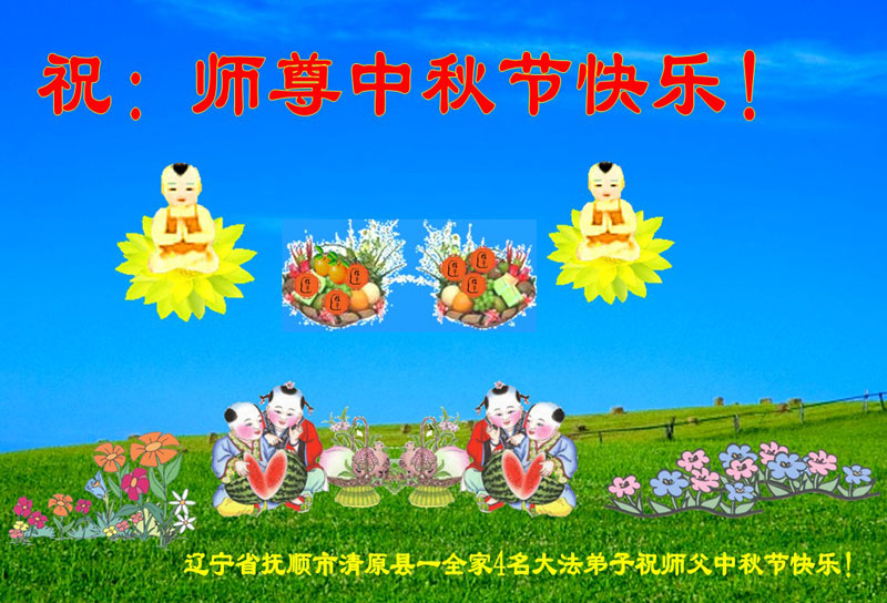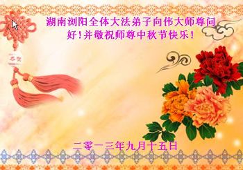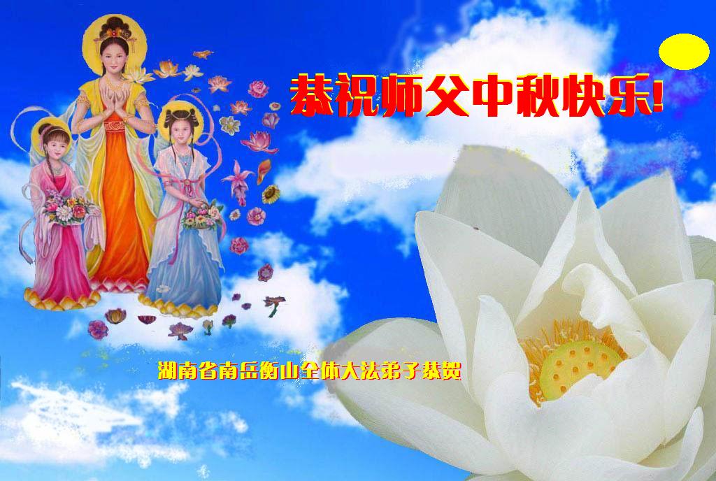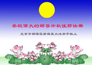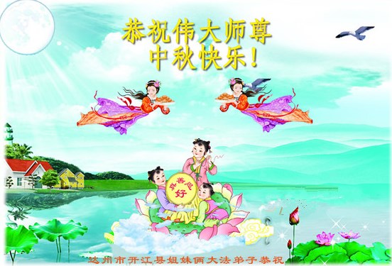 尊敬的师父,您好!一年一度的中秋佳节再度来临了。法国大法弟子在这象征阖家团聚的节日里向慈悲伟大的师父问好!