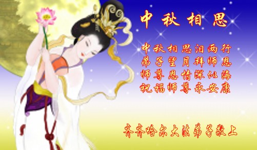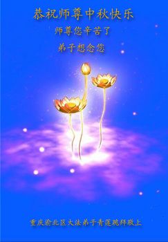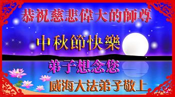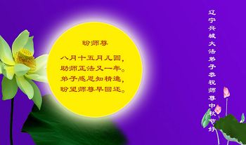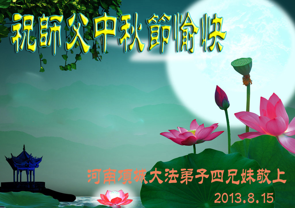 师父您好,不觉之中又是中秋夜了,弟子和其他同修想念您!希望我们能够更快的放下人念人心,走出旧宇宙为私为我,执著自我的执著,兑现誓约,承当救度众生重任,助师正法。在做好师父交托的三件事中走正大法弟子的路。弟子谢师恩!
