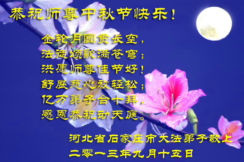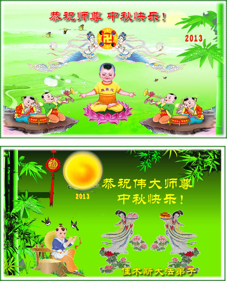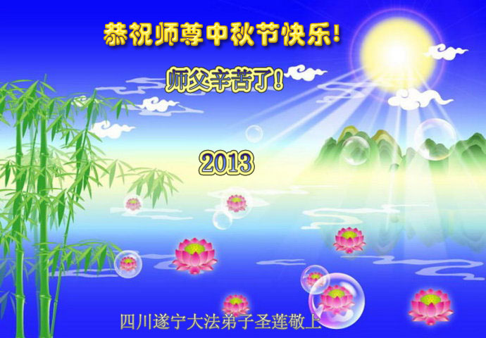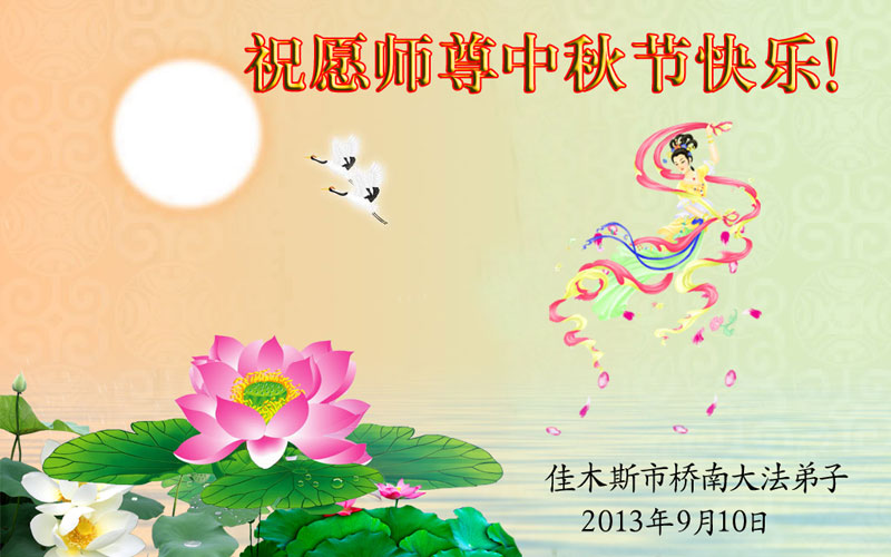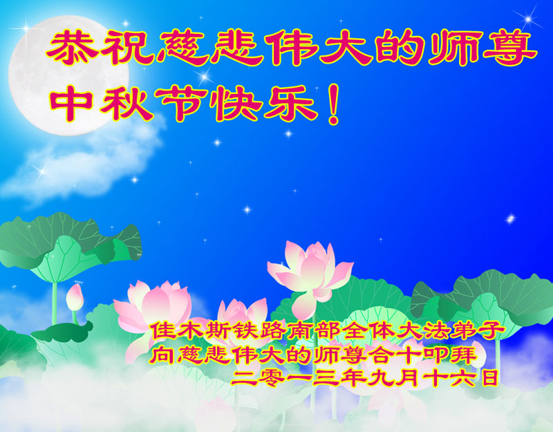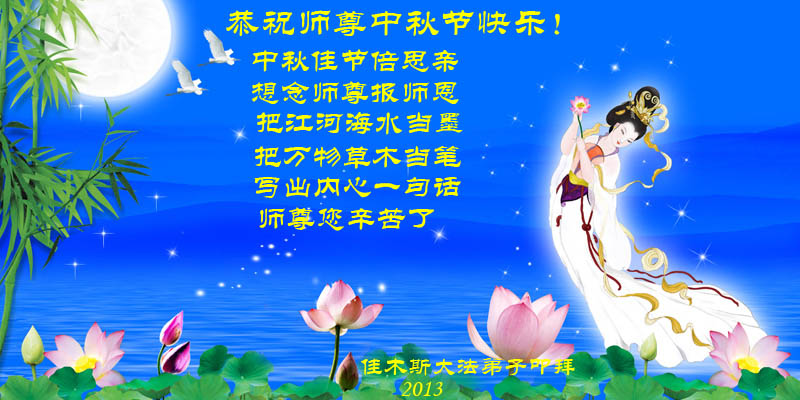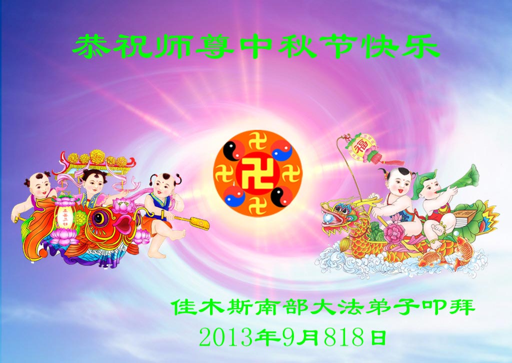 <英文版: http://en.d2s3ombhnov3zf.cloudfront.net/html/articles/2013/9/20/142225.html>美国各地大法弟子恭祝师尊中秋好