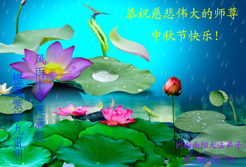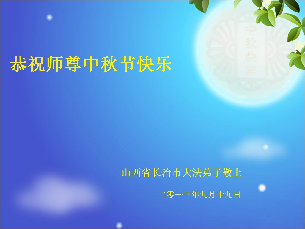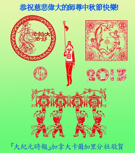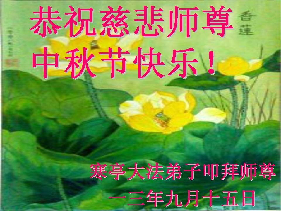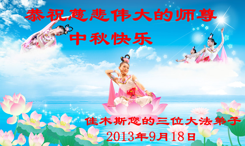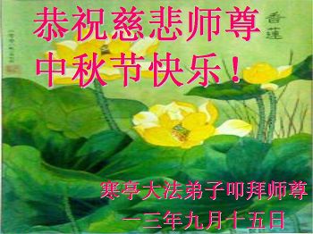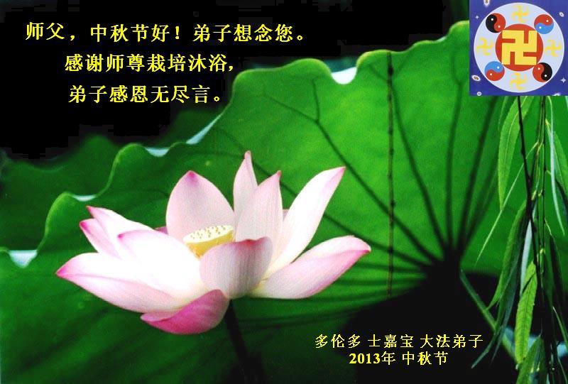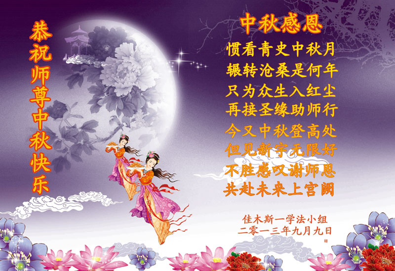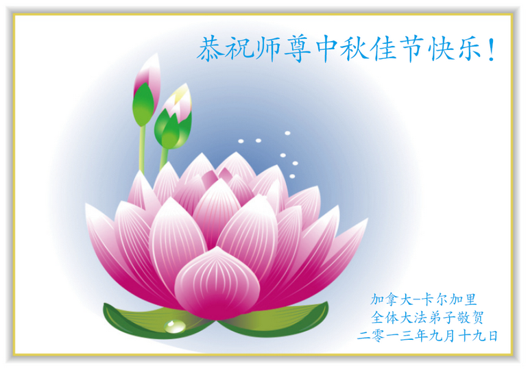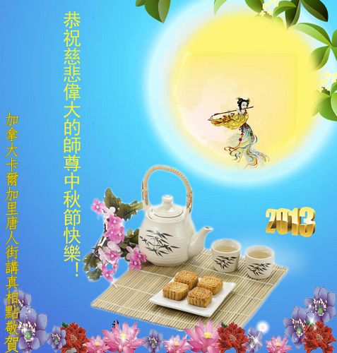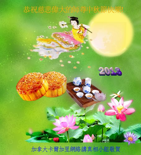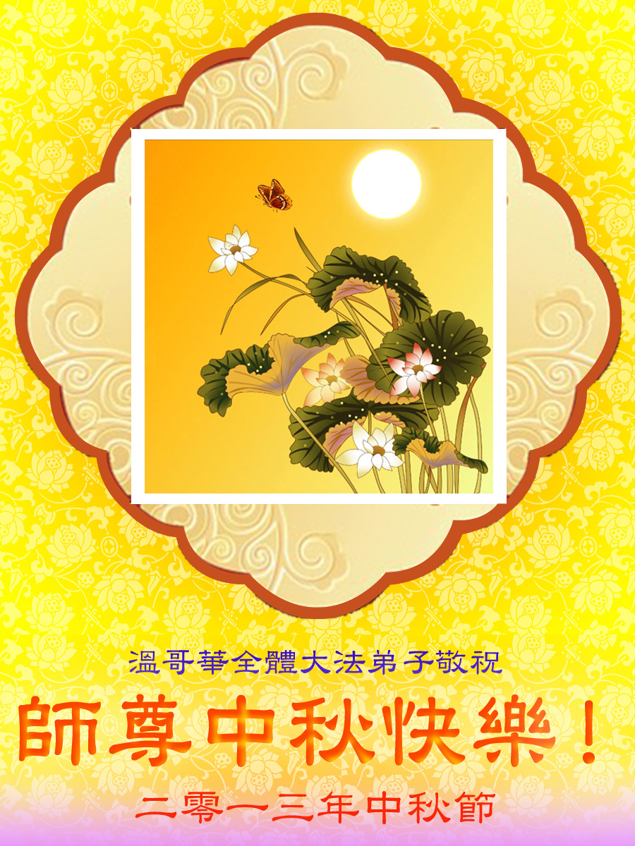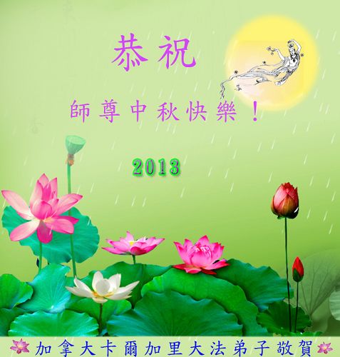 <英文版: http://en.d2s3ombhnov3zf.cloudfront.net/html/articles/2013/9/20/142279.html>加拿大大法弟子恭祝师尊中秋好